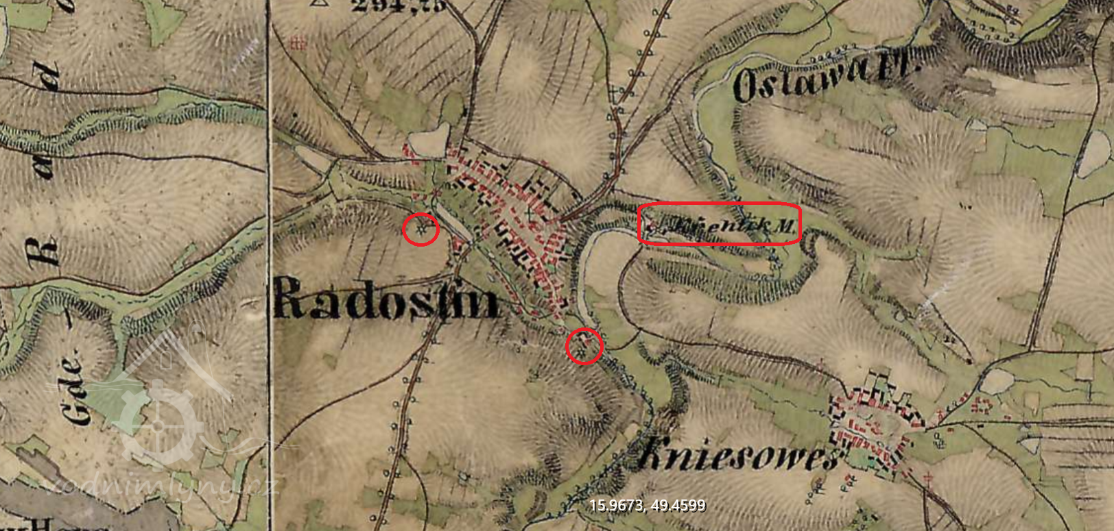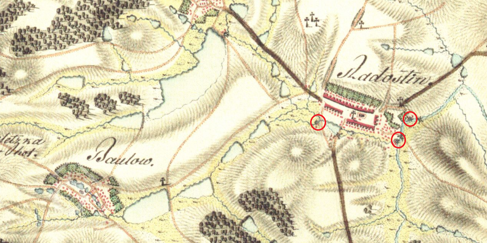 450 m jižně od kostela sv. Bartoloměje v Radostíně