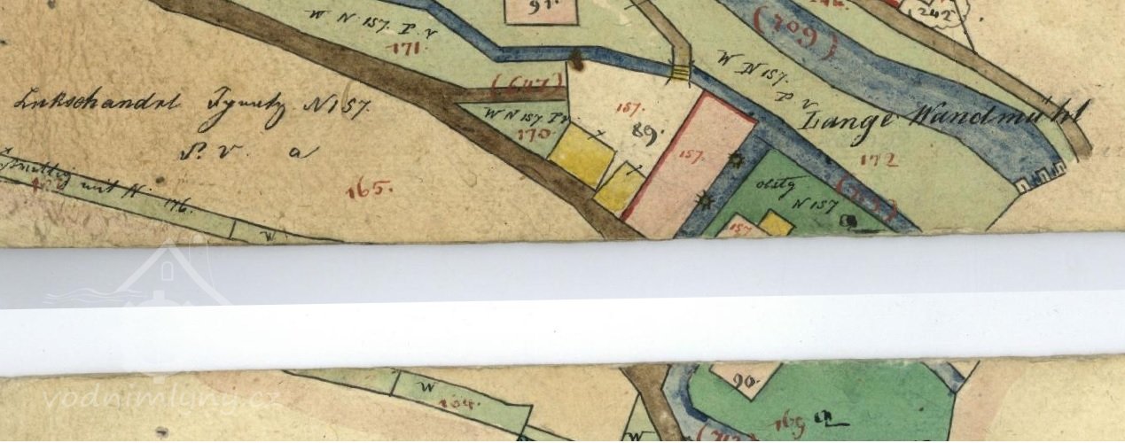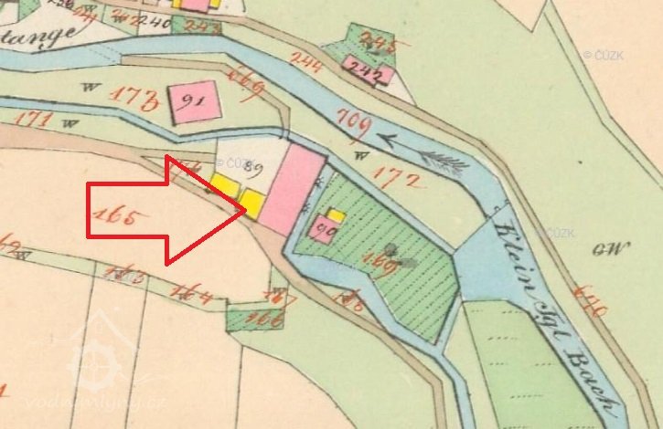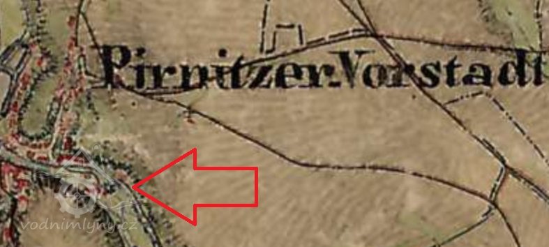 Uváděn již na 1. voj. mapování. Na místě starobylého mlýna byla koncem 19. stol. postavena pila, kde záhy vznikla továrna na klavíry a pianina Bohemia. Proto je stále používaný místní název "Klavírka". Dnes na místě obytný mnohapatrový dům.