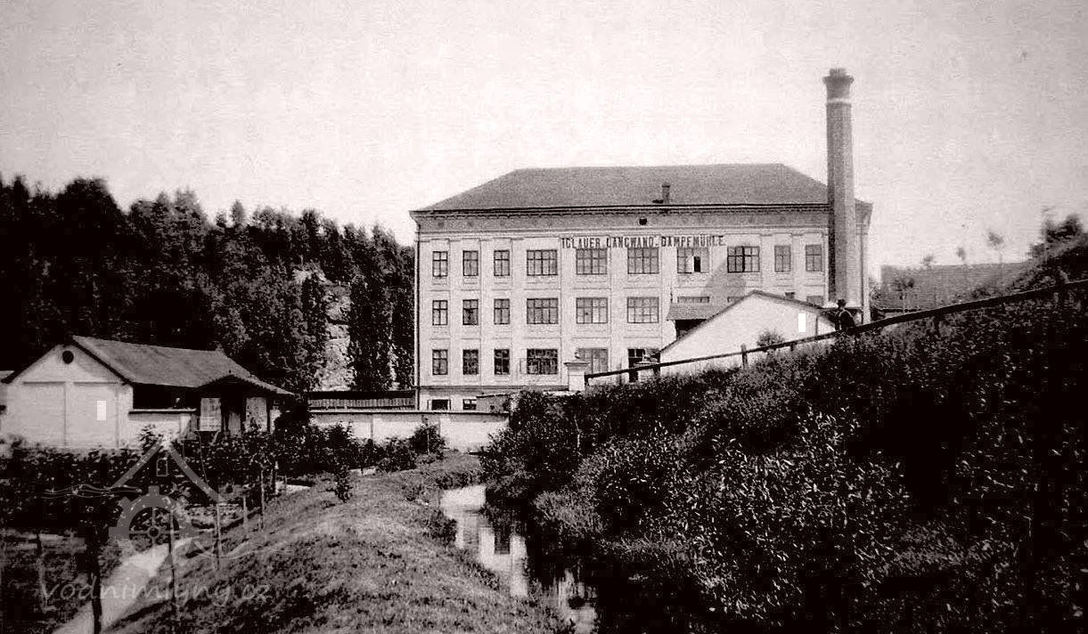 Gustav Allé (1839–1903) začal v rodné Jihlavě stavět první menší parní stroje po roce 1858, kdy se vrátil z Brna, kde pracoval ve strojírně Heinricha Alexandra Luze. Roku 1868 zadal Karl Hesse jihlavskému staviteli Mathäusi Langovi zvýšit svůj umělecký mlýn U Dlouhé stěny (Langwandmühle) o další dvě patra, Gustav Allé mu jej zařídil na parní pohon a po tři roky také vedl. Poté se věnoval své strojnické projekční kanceláři, kterou po něm převzal jeho syn Ignaz, a také obecní politice. Mlýn později provozovala firma J. & L. Salzer a roku 1902 jej zakoupil textilní továrník z Ústí nad Orlicí Florian Hernych. V roce 1907 zvětšil starý náhon a osadil turbínu, v následujícím roce ve mlýně instaloval 186 mechanických stavů. Po rozpadu Hernychova koncernu během první světové války budovu získal Rudolf Dobrowolný a zřídil v ní pletařský závod pod značkou Moravia. V roce 1923 ji zakoupil Josef Beitner a začal v ní vyrábět piana a pianina pro vídeňskou firmu Hofmann & Czerny – navázal při tom na působení klavírnické dílny Josefa Bělohlávka, založené v Jihlavě již roku 1871. Výroba pianin pokračovala i pod n. p. Továrny na piana a varhany, pod značkami Bohemia a Scholze. Jihlavská továrna se osamostatnila už roku 1989, nový vlastník však roku 2008 výrobu pianin soustředil zpět do Hradce Králové. Budova, která si zevně uchovala původní podobu prvního jihlavského parního mlýna, a to včetně komínu a z velké části i členění fasád, byla zbořena roku 2009 a na jejím místě dnes stojí bytové domy.