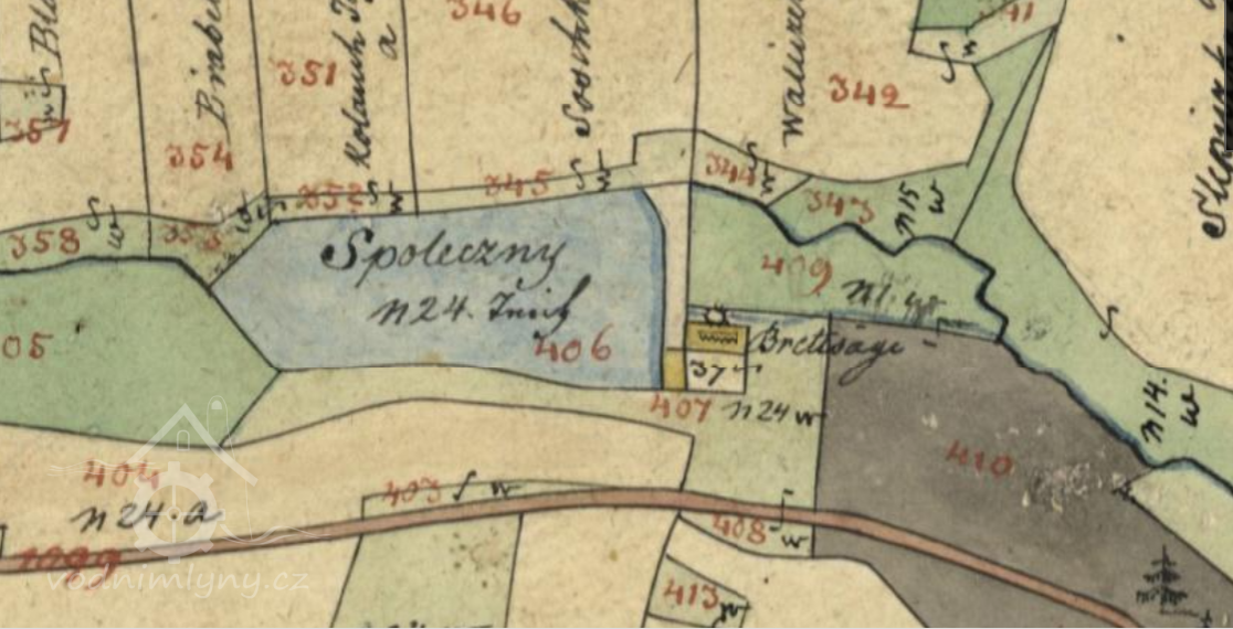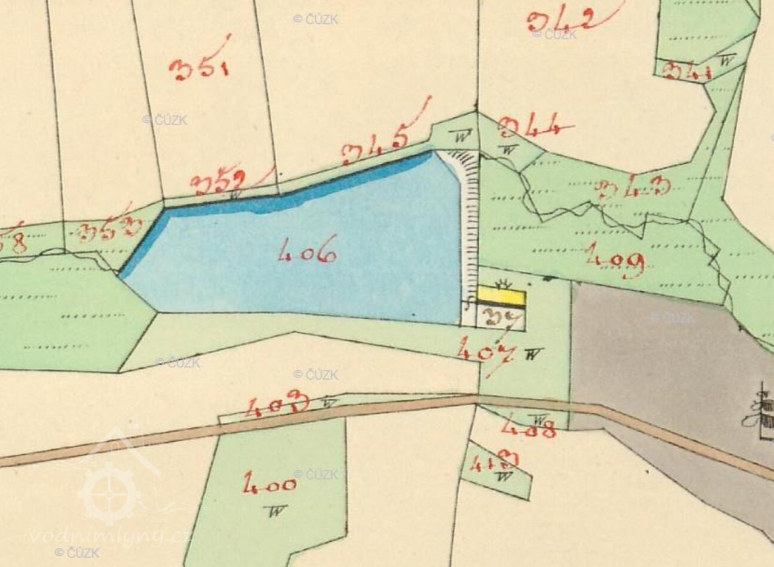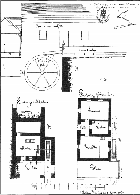 Popis1930: 1 kolo na svrchní vodu, prům. 4 m, hltnost 0,055 m3/s, spád 4,5 m, výkon 2,2 HP (nejméně na Velkomezíříčsku)