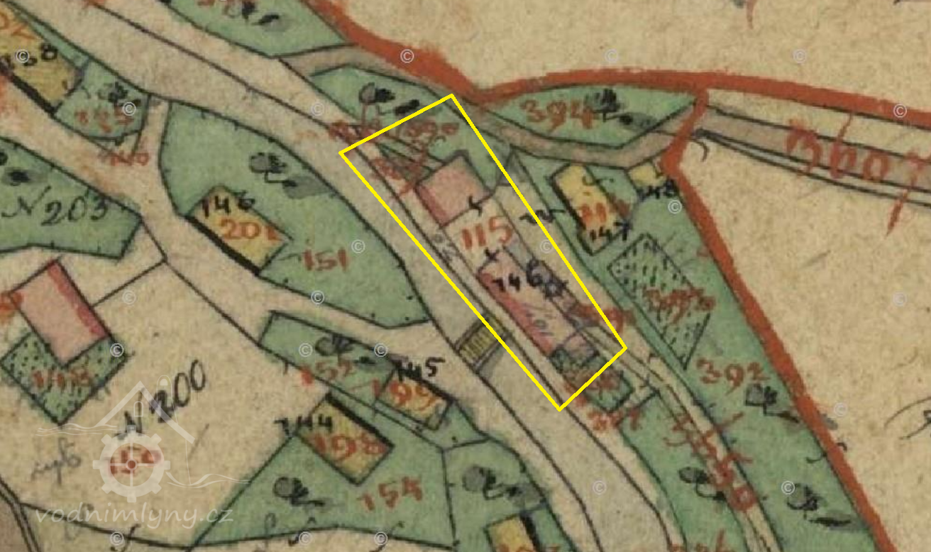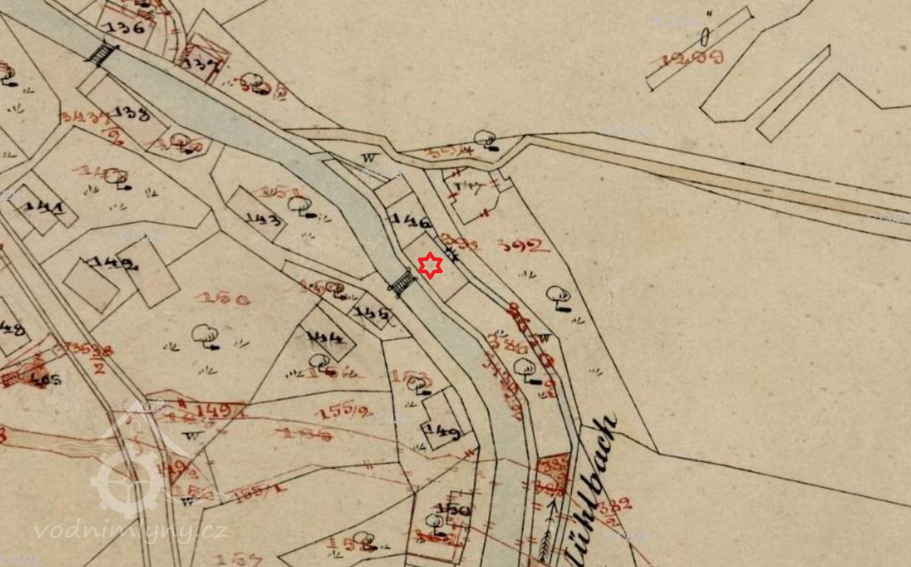 Popis1930: 1 kolo na svrchní vodu, hltnost 0,17 m3/s, spád 3,65 m, výkon 5,4 HP