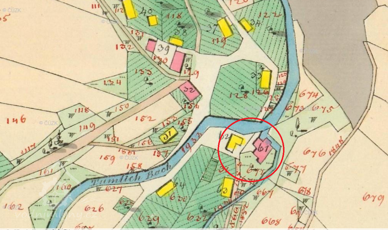 Z větší části zaníklý mlýn přímo ve vsi, vedle mlýniště dnes stojí obytný domek, na místě mlýnice kolna.