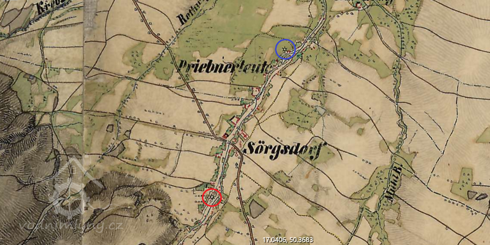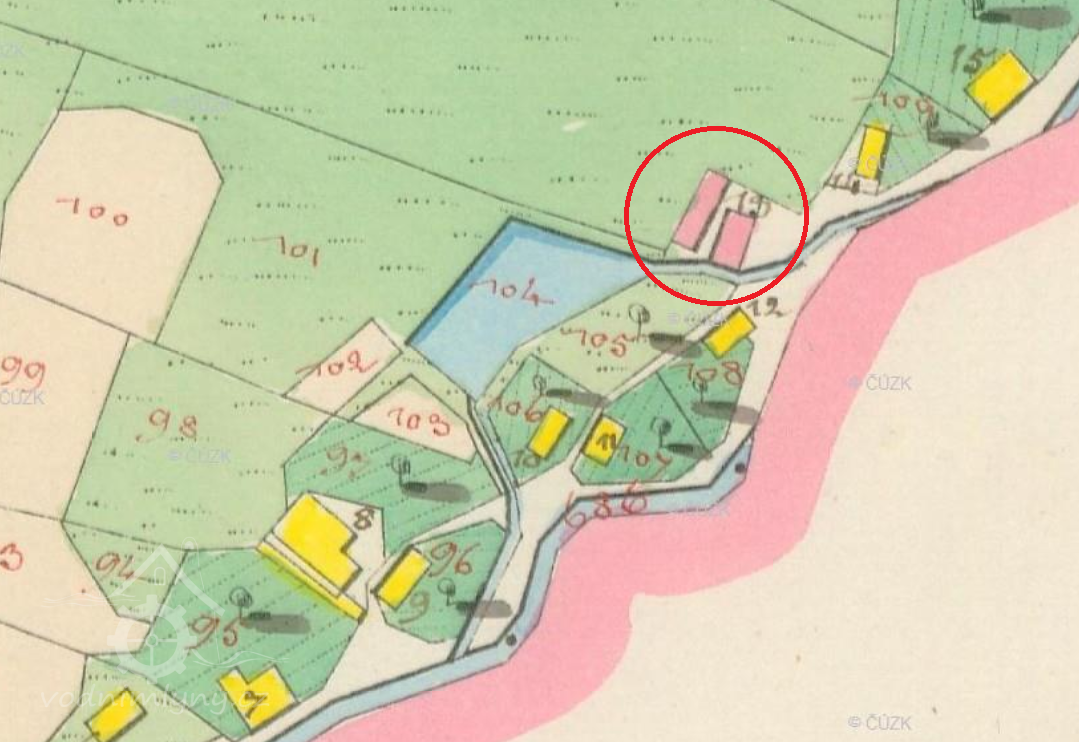 Popis1930: vodní kolo na svrchní vodu, hltnost 0,07 m3/s, spád 4,9 m, výkon 3 HP