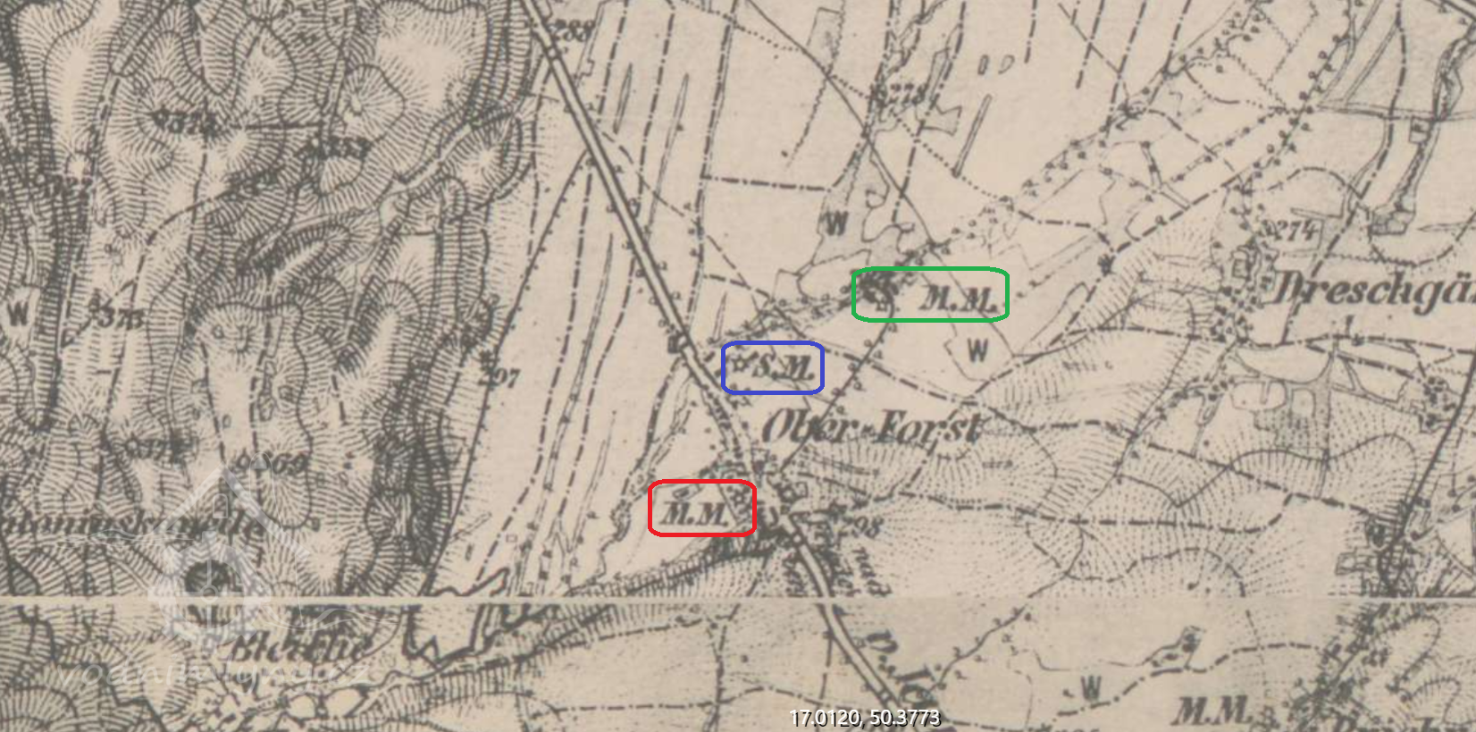 1876-78 na mapě III. vojenského mapování mlýn [MM]