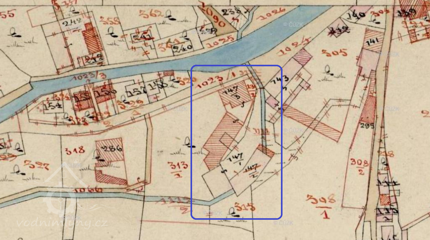 Z větší části zaniklý mlýn na pravém břehu pod Zámeckým vrchem. Vzhledem k absenci starých katastrálních map zatím neznáme jeho stáří.