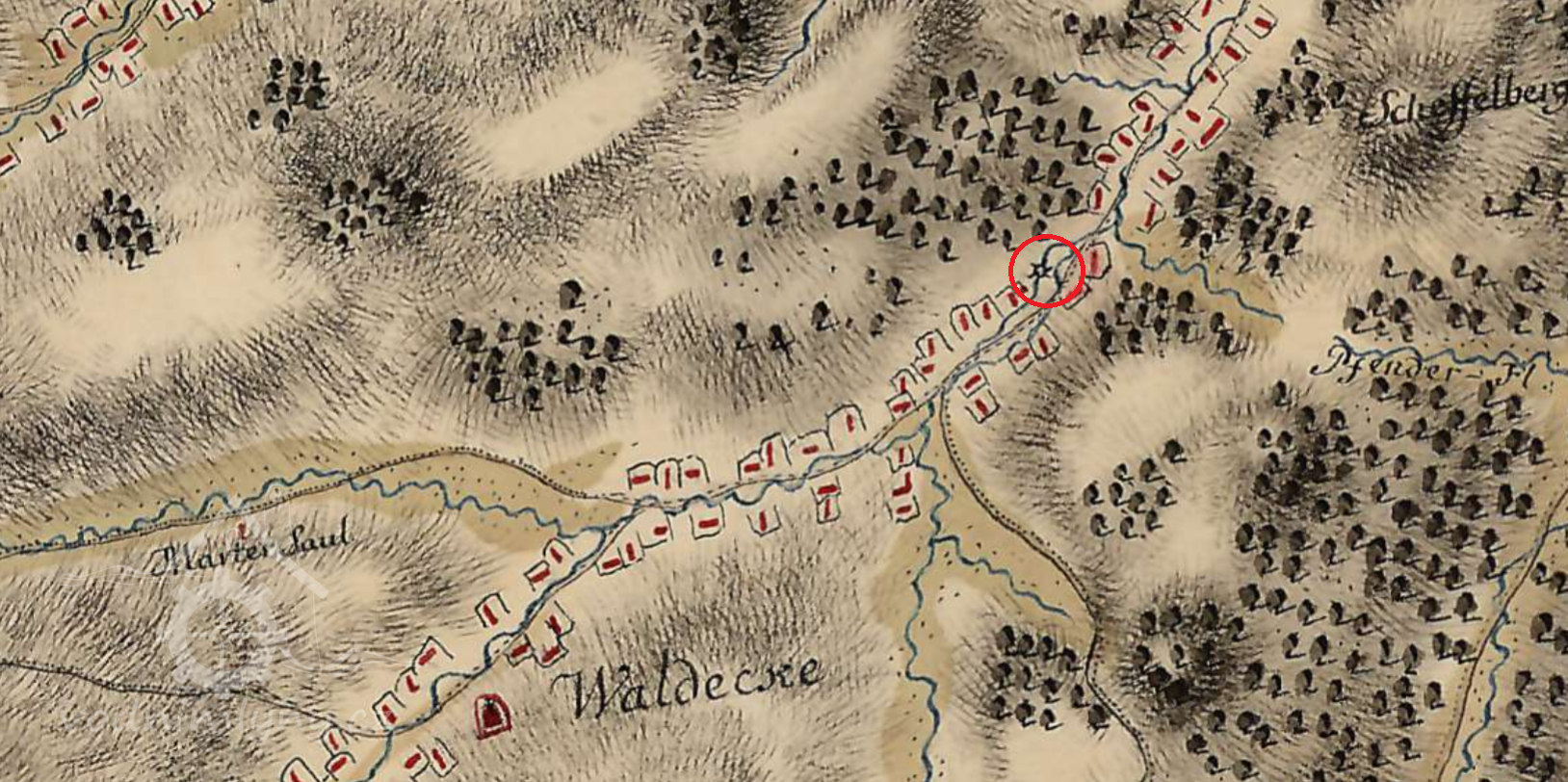 1,1 km sv od zaniklého kosetala sv. Barbory v Zálesí