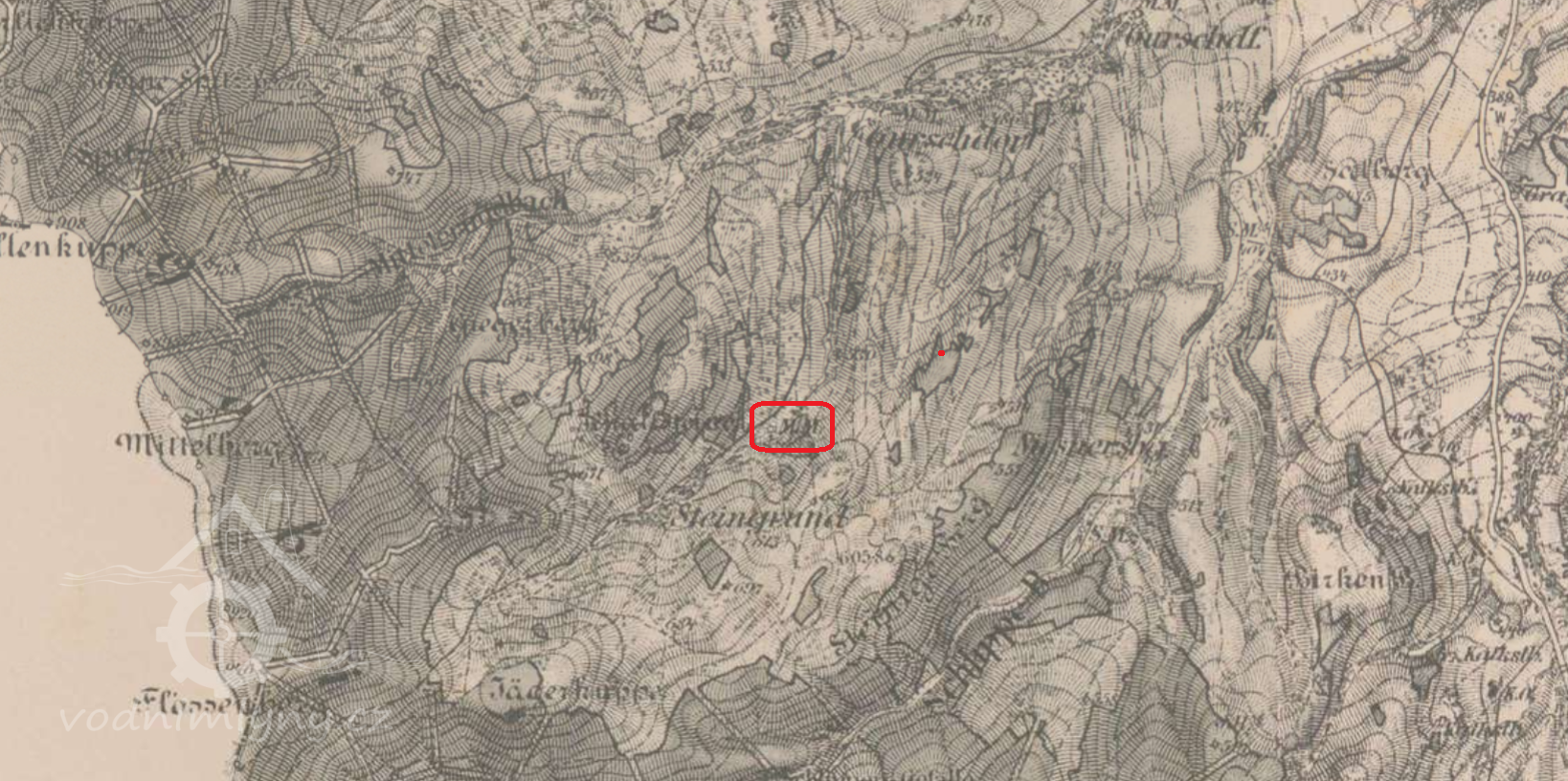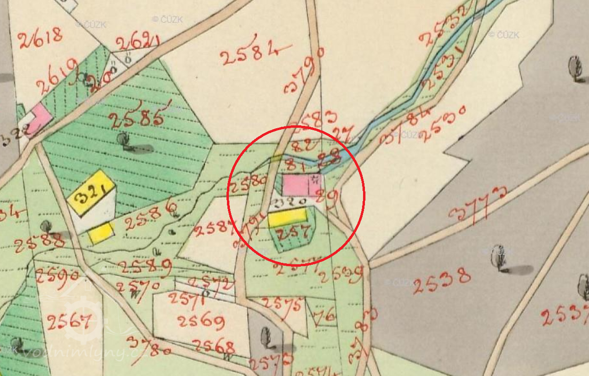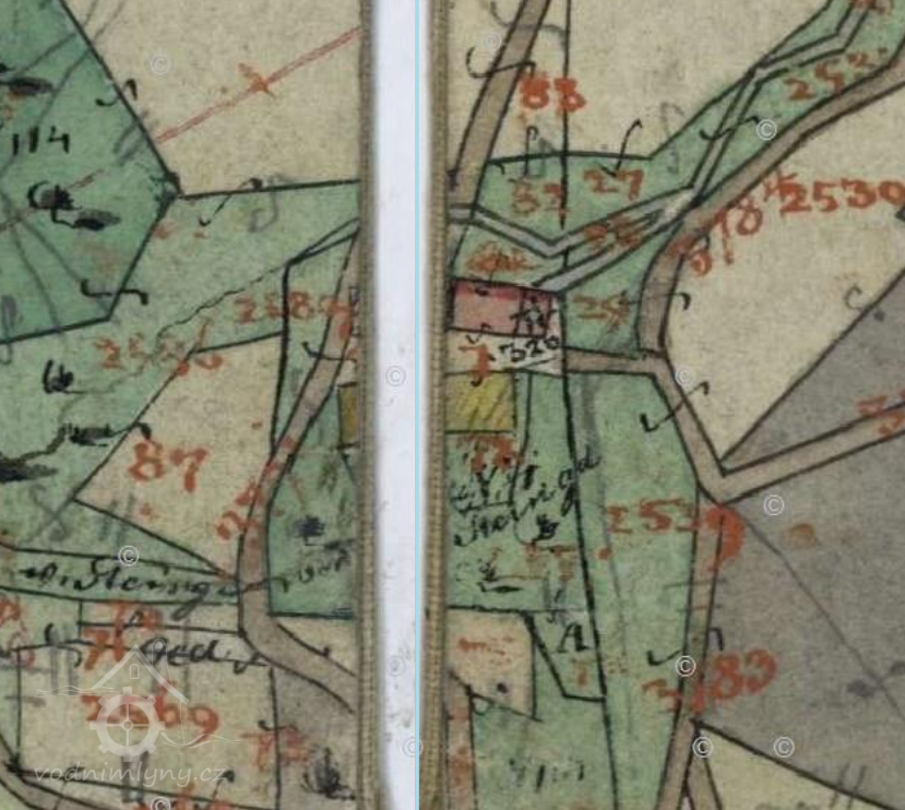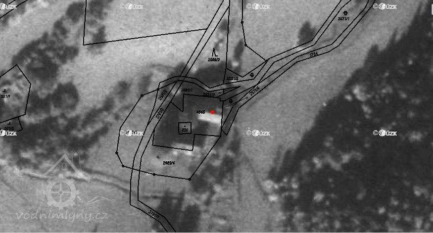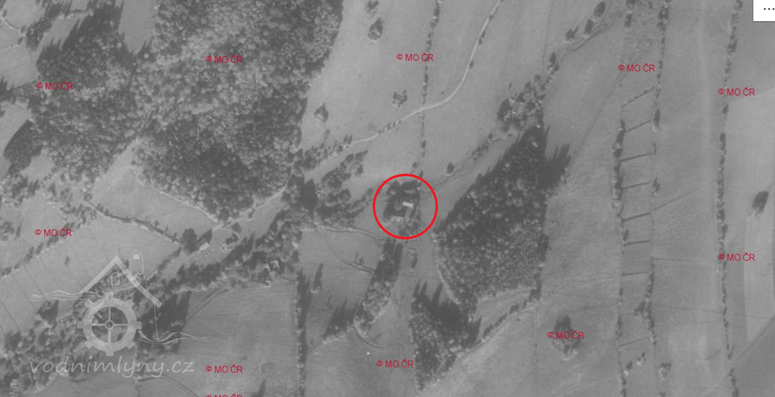 Mlýn stál ještě v roce 1953, 1964 již není patrný.