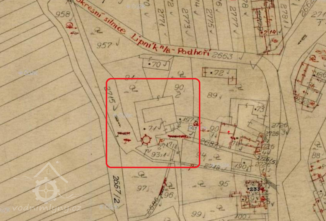 Nejstarší mlýn byl na č.p. 2. V roce 1872 se tam usadil, po sňatku s Marianou Onderkovou z Podhoří, Fridolin Lassner. Přišel z Haukovic u Uničova a mluvil pouze německy. Měli devět dětí a mlynářské řemeslo vykonával až do smrti v roce 1898. Nejmladší syn zahynul v první světové válce. Nejstarší syn Antonín se vyučil mlynářskému řemeslu a po sňatku s Annou Nepomucenou Bubeníkovou z Dolního Újezda zůstal na mlýně. Měli spolu deset dětí, pět z nich zemřelo.V první světové válce utrpěl těžké zranění kolena, což zapříčinilo jeho 70% invaliditu, byl tak neschopný vykonávat mlynářskou práci. Po odchodu do války měla na starost vedení mlýna manželka. Nejstarší syn Evžen se musel od deseti let učit mlynářskému řemeslu, stal se tovaryšem a mlynářem. V roce 1931 se oženil s Miladou Kellnerovou, měli spolu dvě děti, jedno zemřelo. Za jeho období byl celý mlýn renovován, zvýšila se mlecí kapacita. V padesátých letech vzaly Severomoravské mlýny Olomouc mlýn do své správy a pan Lassner byl pouze jeho vedoucí. V roce 1959 byl manželům Lasserovým majetek vyvlastněn. V současné době je bývalá část mlýna přestavěna k bydlení.