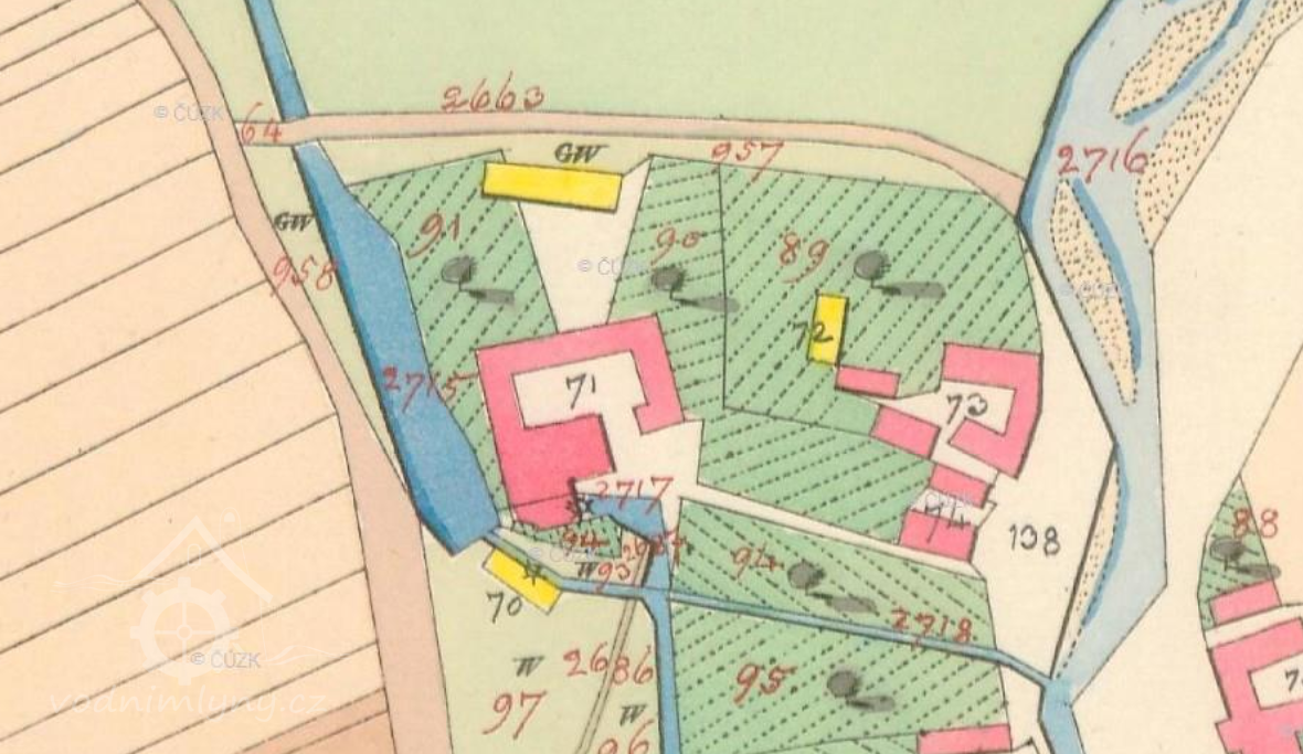 Popis1930: 1 kolo na svrchní vodu, hltnost 0,7 m3/s, spád 5,7 m, výkon 3,5 HP