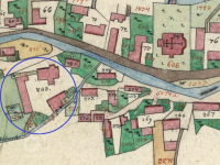 Mlýnice na půdorysu L, v sousedství zříceniny patrně hospodářské budovy.