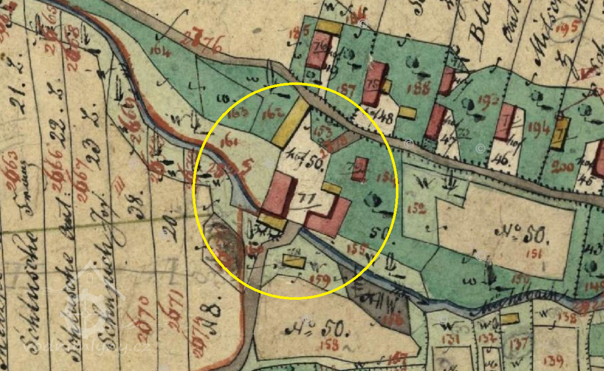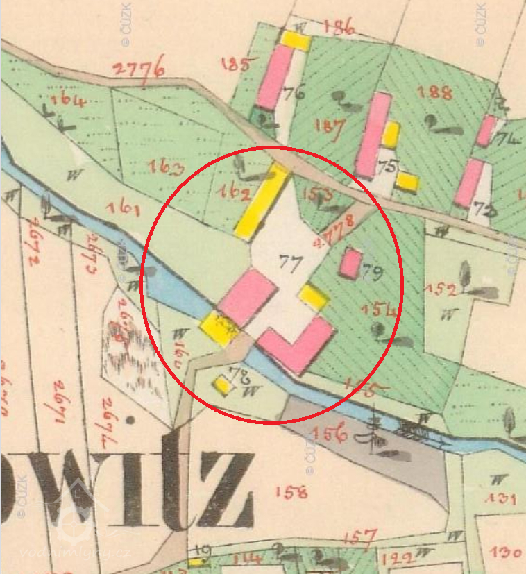 Mlýn na sz konci obce, z areálu na půdorysu U zachováno pouze spojovací křídlo u potoka.