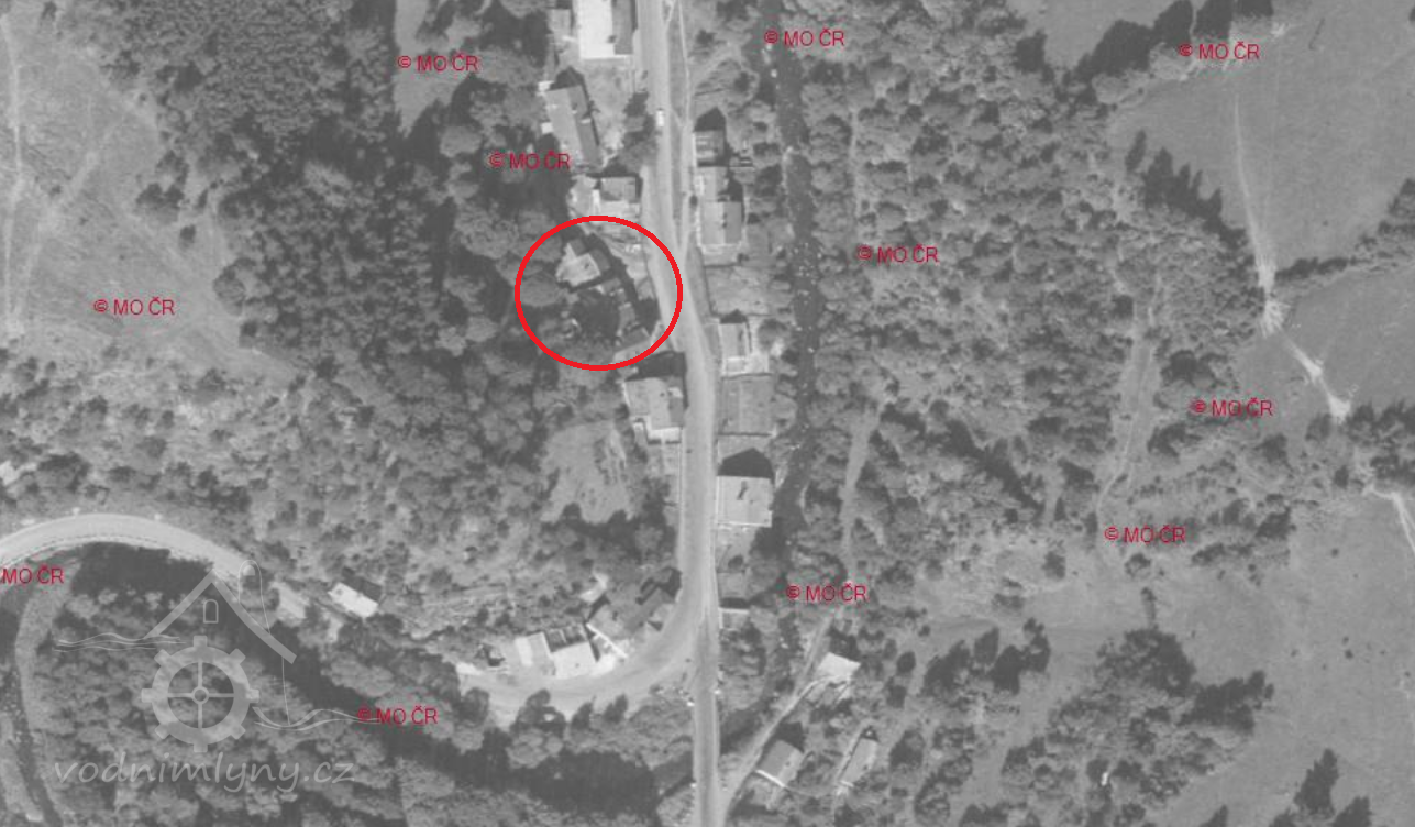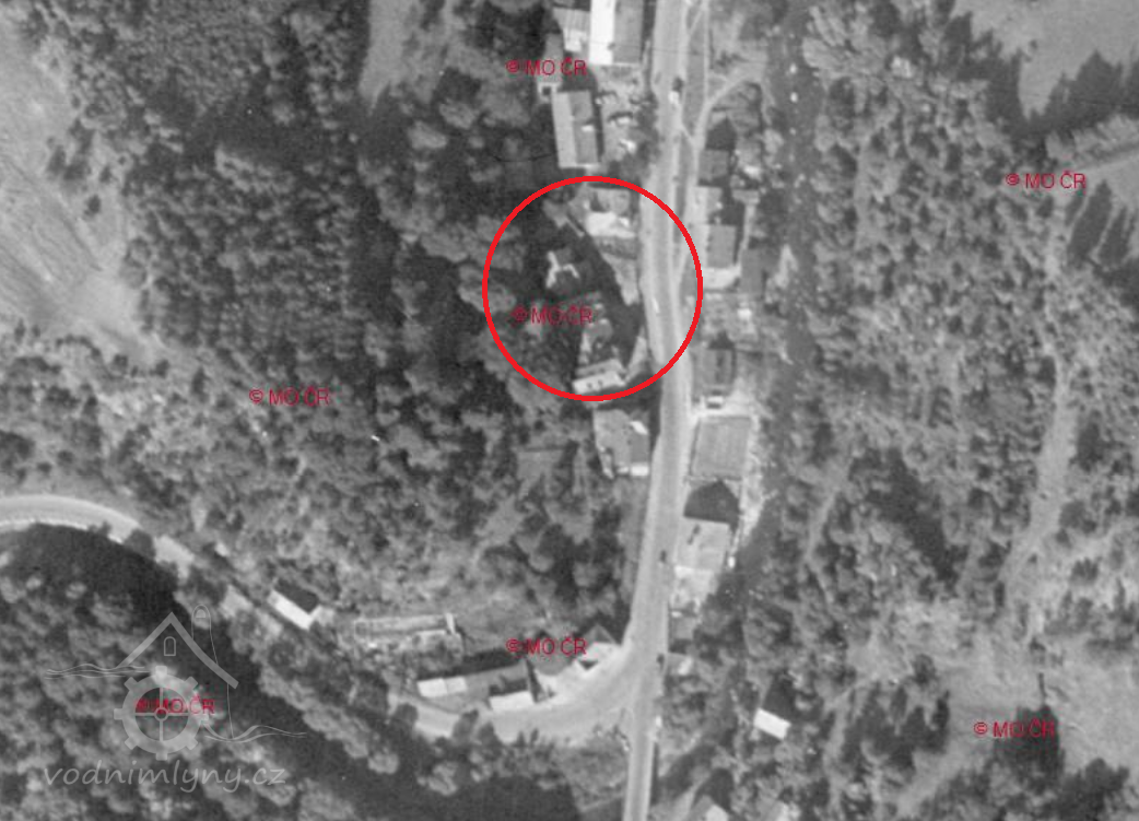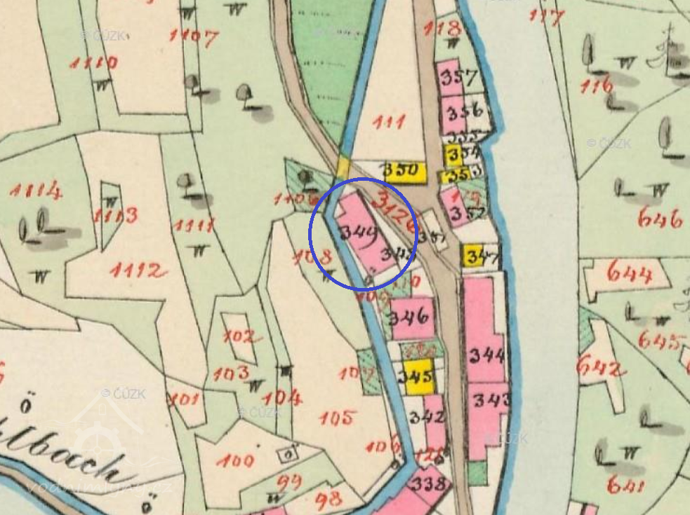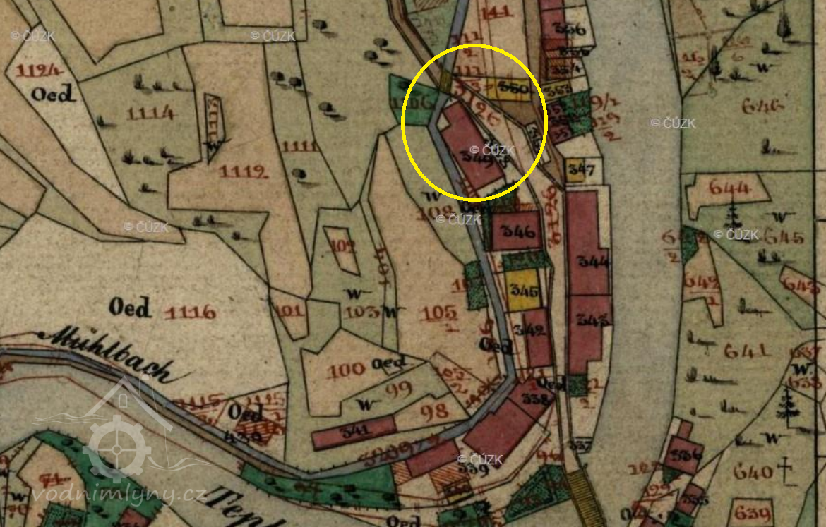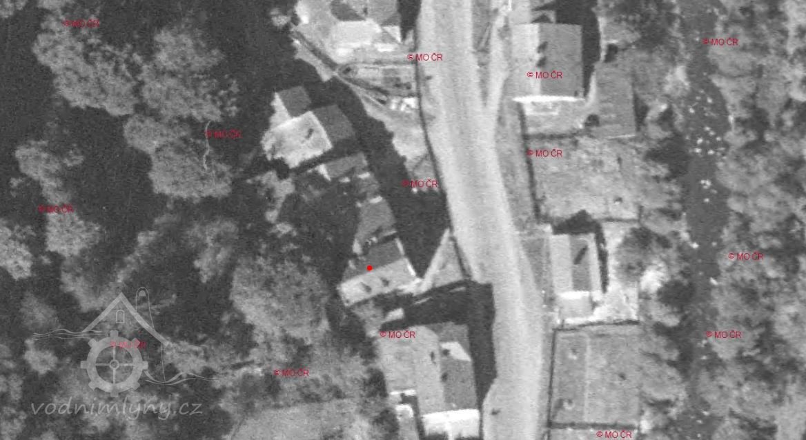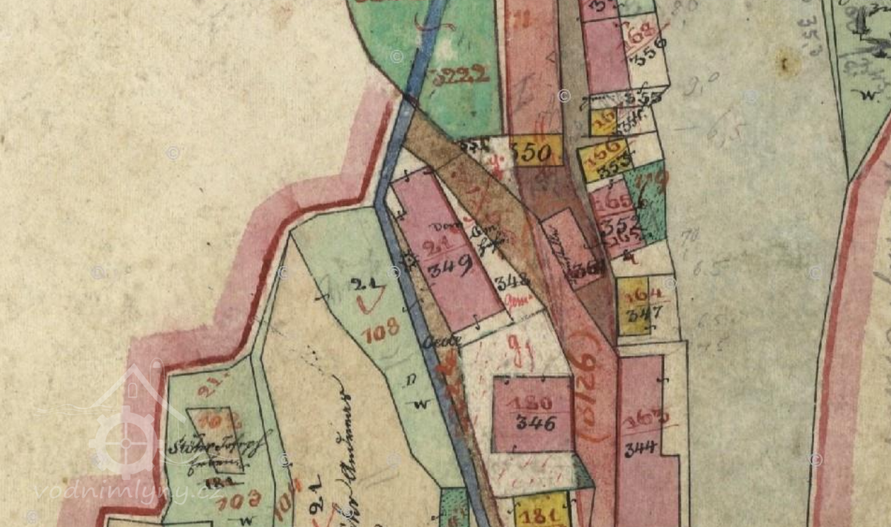 1748 Tereziánský katastr: mlýn se 4 koly na svrchní vodu na stálé vodě s jedním stálým pomocníkem