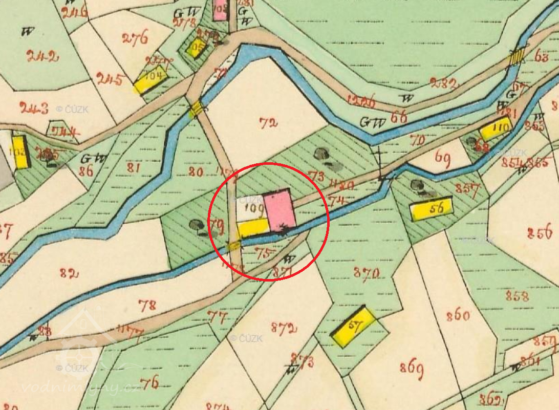 Popis1930: 1 turbína Francis, hltnost 0,3 m3/s, spád 4,8 (4,6) m, výkon 13,66 HP