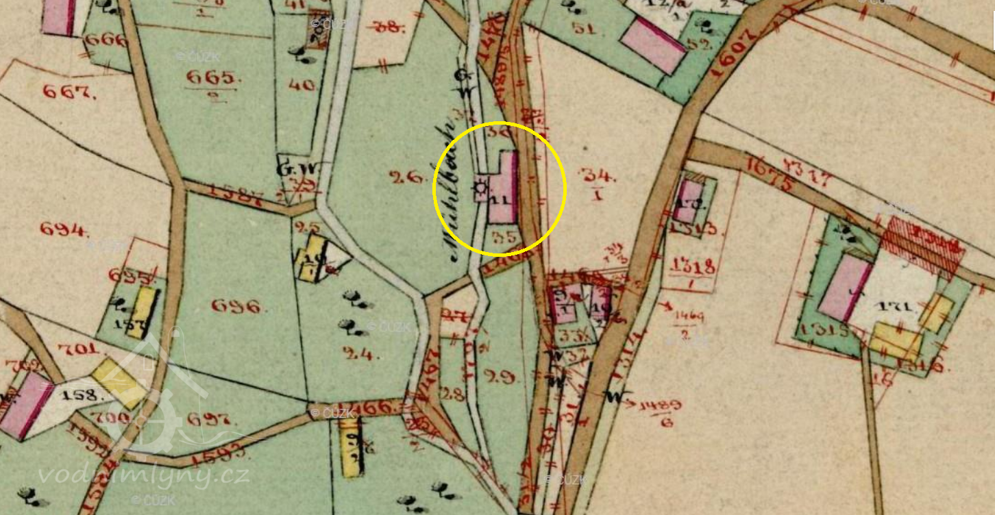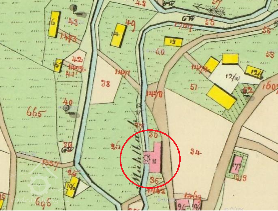 1757 Tereziánský katastr - panský a poddanský mlýn