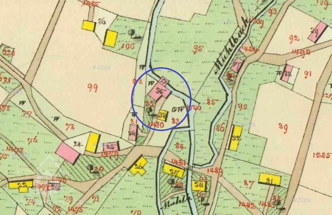 1757 Tereziánský katastr - panský a poddanský mlýn