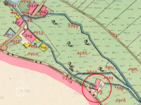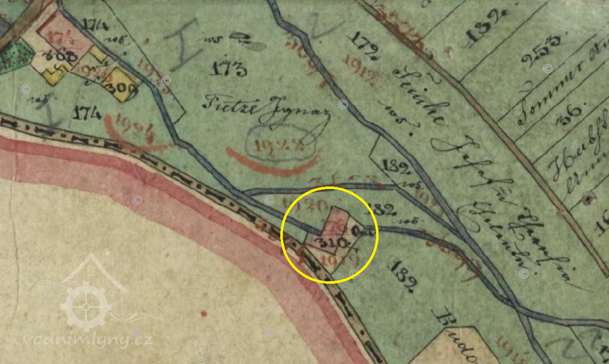 Poslední z trojice mlýnů v jv výběžku katastru Krupky, původní mlýn zbořen, na jeho parcele dnes obytný domek se stejným čp.