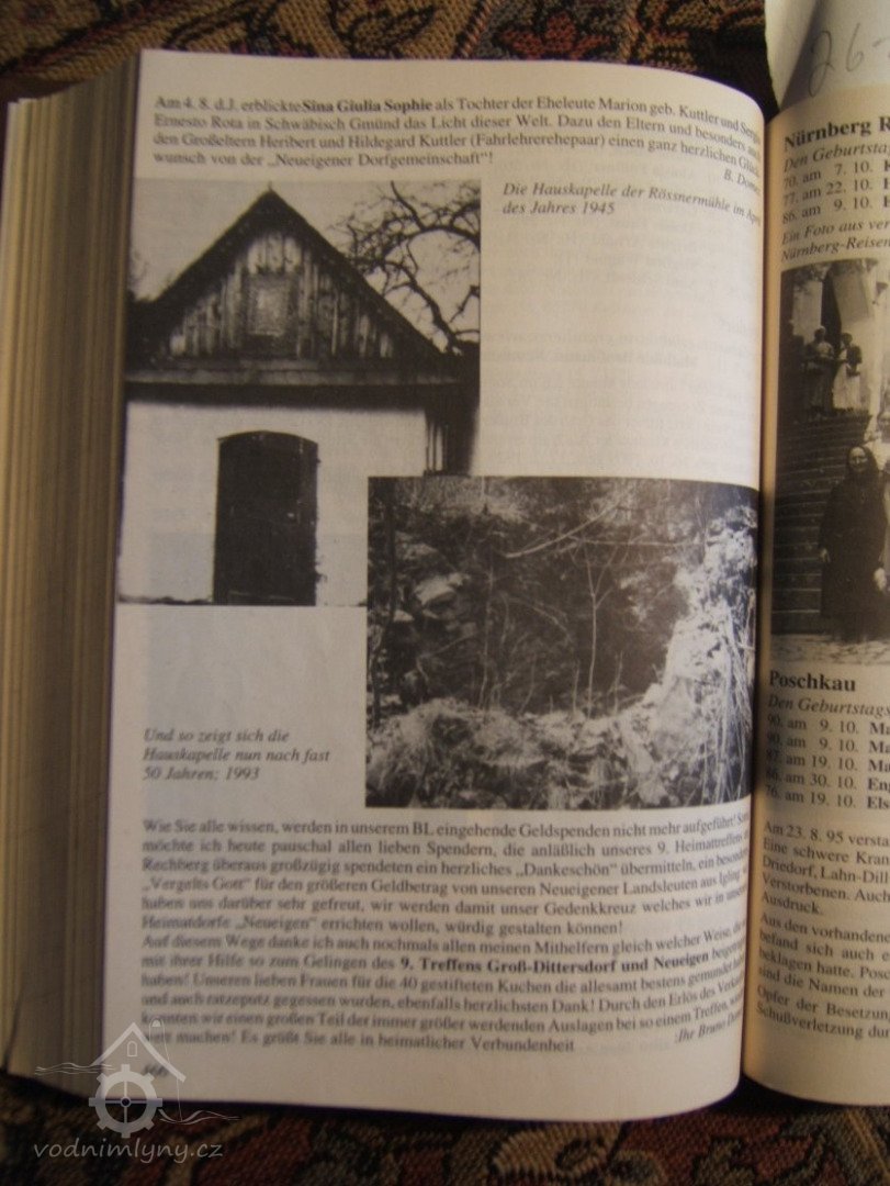 Kaple s portrétem "Panny Marie" byla postavena kolem roku 1855 majitelem mlýna Františkem Rudolfem.