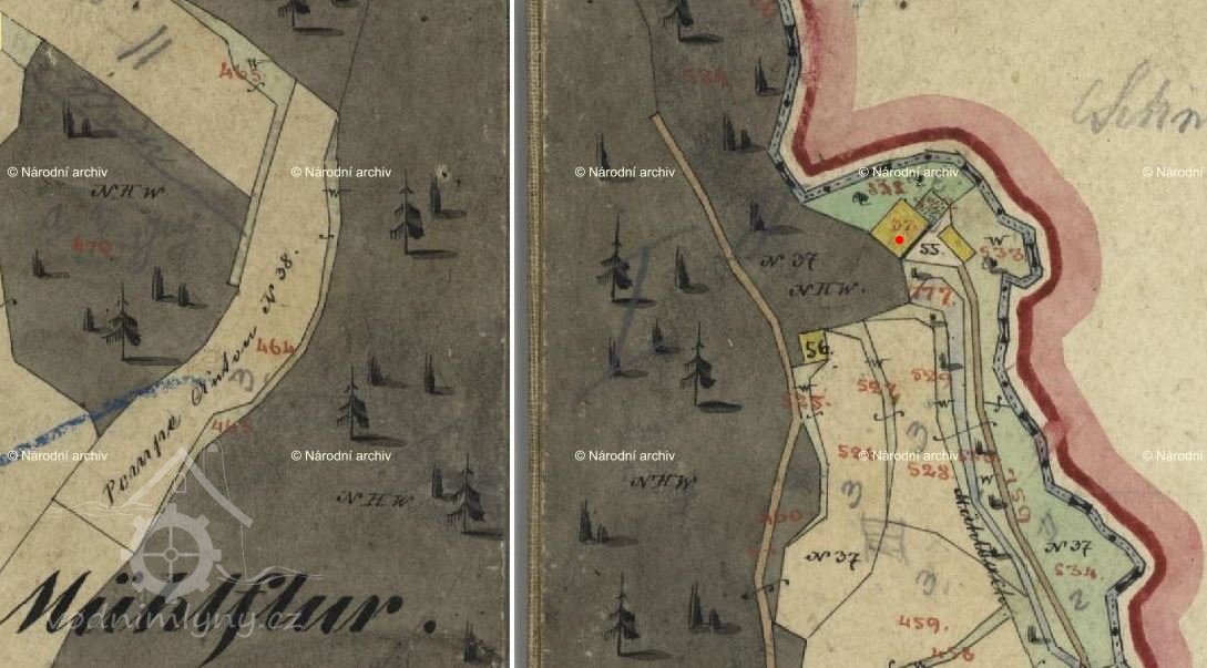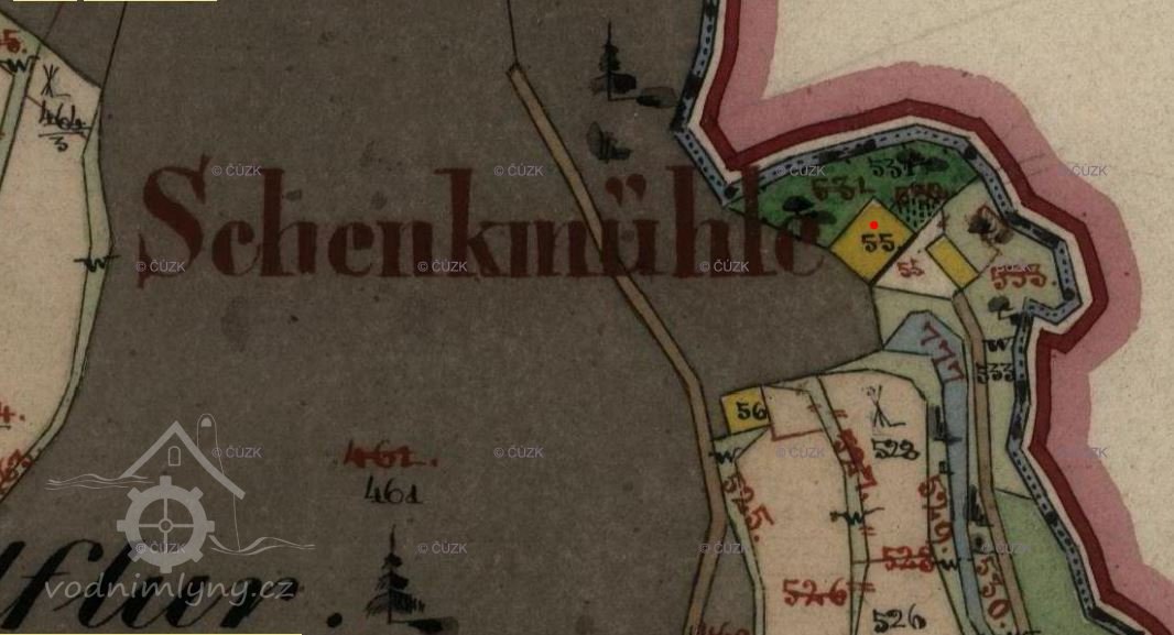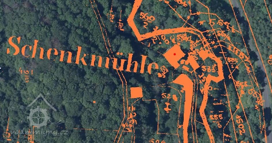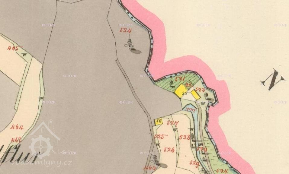 Zřícenina mlýna na Lučním potoce asi 2 km jižně od Zubrnic.