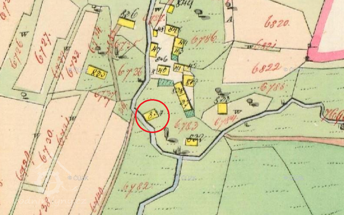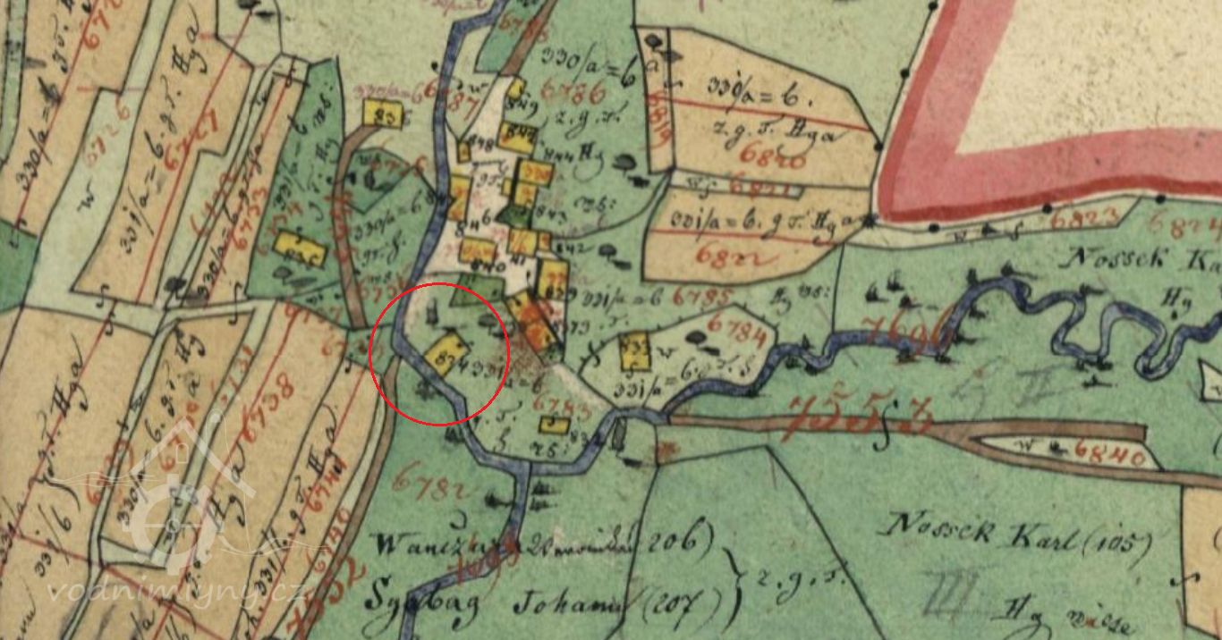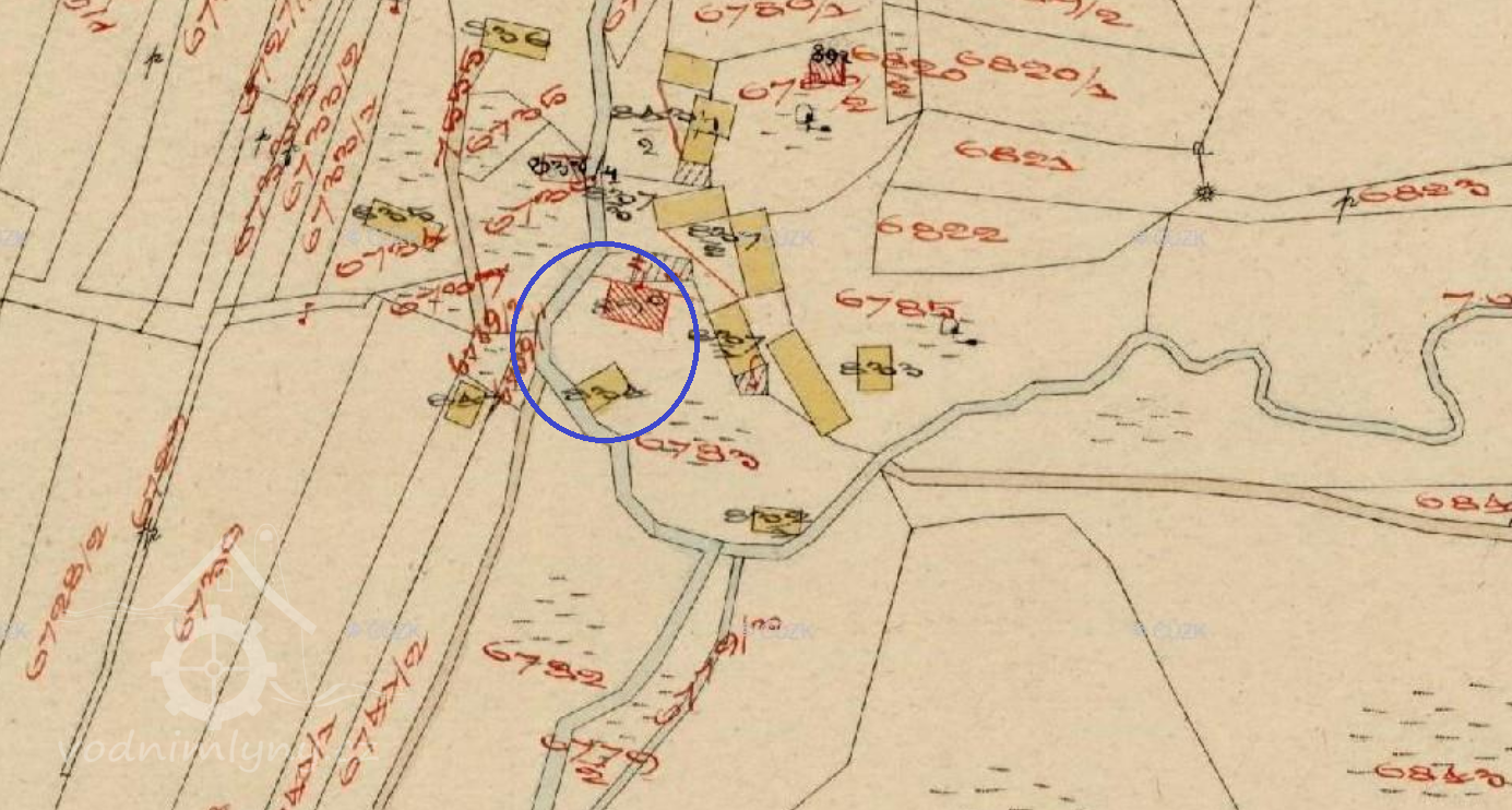 Malý, stavebně zachovaný mlýn lidové architektury v osadě. Podle indikační skici původní objekt s vodním pohonem ležel na místě stodoly. Popisné číslo mohlo být přeneseno na nový mlýn, nalézající se 100 m jižně.