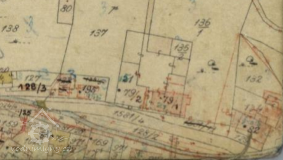 Popis1930: 1 kolo na svrchní vodu, hltnost 2,67 m3/s, spád 0,28 m (?), výkon 5,5 HP