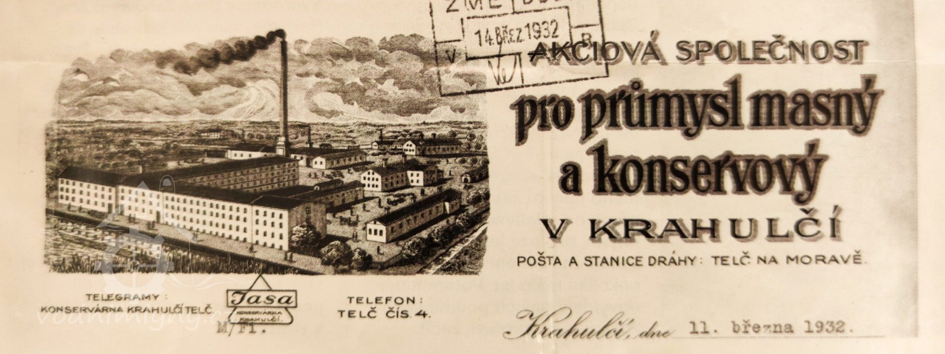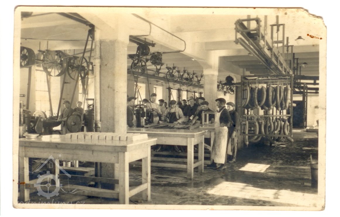 1929 Přestavba továrny a zavedena masná a uzenářská výroba v rodinné firmě Akciová společnost pro průmysl masný a konzervový v Krahulčí