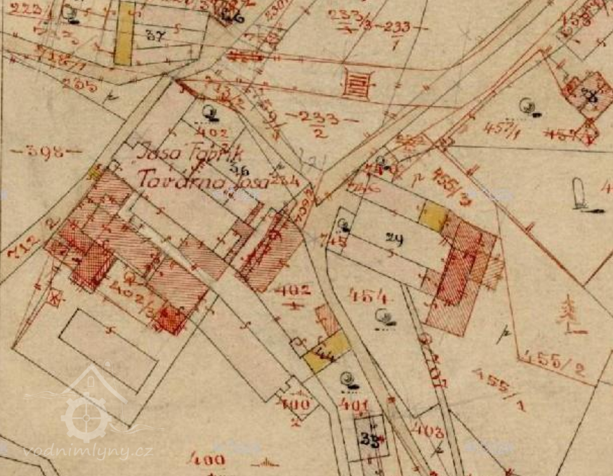 Původně mlýn zvaný Suchý koupil v roce 1824 Jakub Lang a přestavěl jej na přádelnu. Výrobnu pak koupila podnikatelská rodina Biedermannů, v šedesátých letech 19. století získali podnik bratři Lannerové, kteří se zde specializovali na výrobu vojenských textilií. V roce 1912 jej prodali Karlu Löwovi, jenž vlastnil textilky v Heleníně a Malém Beranově. Löwova přestavba továrny zůstala nedokončená a provoz od roku 1920 stál. V letech 1926–1927 objekt koupil Jan Satrapa a nechal přestavět Josefem a Karlem Bartušky ze Studené na moderní třípodlažní továrnu na výrobu plechovek pro velkouzenářství ve Studené, vybavenou stroji brunšvické firmy Karges & Hammer. Po přestavbě v roce 1929 vznikla Akciová společnost pro průmysl masný a konzervový v Krahulčí, později JASA, a. s., Krahulčí. V roce 1935 byl instalován kompresor firmy Mráz z Chocně a dvě čerpadla od Bratří Sigmundů z Lutína. Výroba plechovek byla přesunuta do Střížovic (Rozkoš, okres Jindřichův Hradec), kde od roku 1936 probíhala pod názvem Ferremba, továrna na plechové obaly. Za druhé světové války Satrapovy závody musely zásobovat německou armádu, v roce 1948 byly znárodněny. Poté se produkce soustředila na zásobování státních hmotných rezerv. Původní výrobní objekt dodnes stojí (parcela 159), jeho hlavní průčelí směrem k Suchému rybníku zakrývá tepelná izolace a původní vysoký komín na jižní straně areálu byl snížen. Produkce masných výrobků pokračuje.