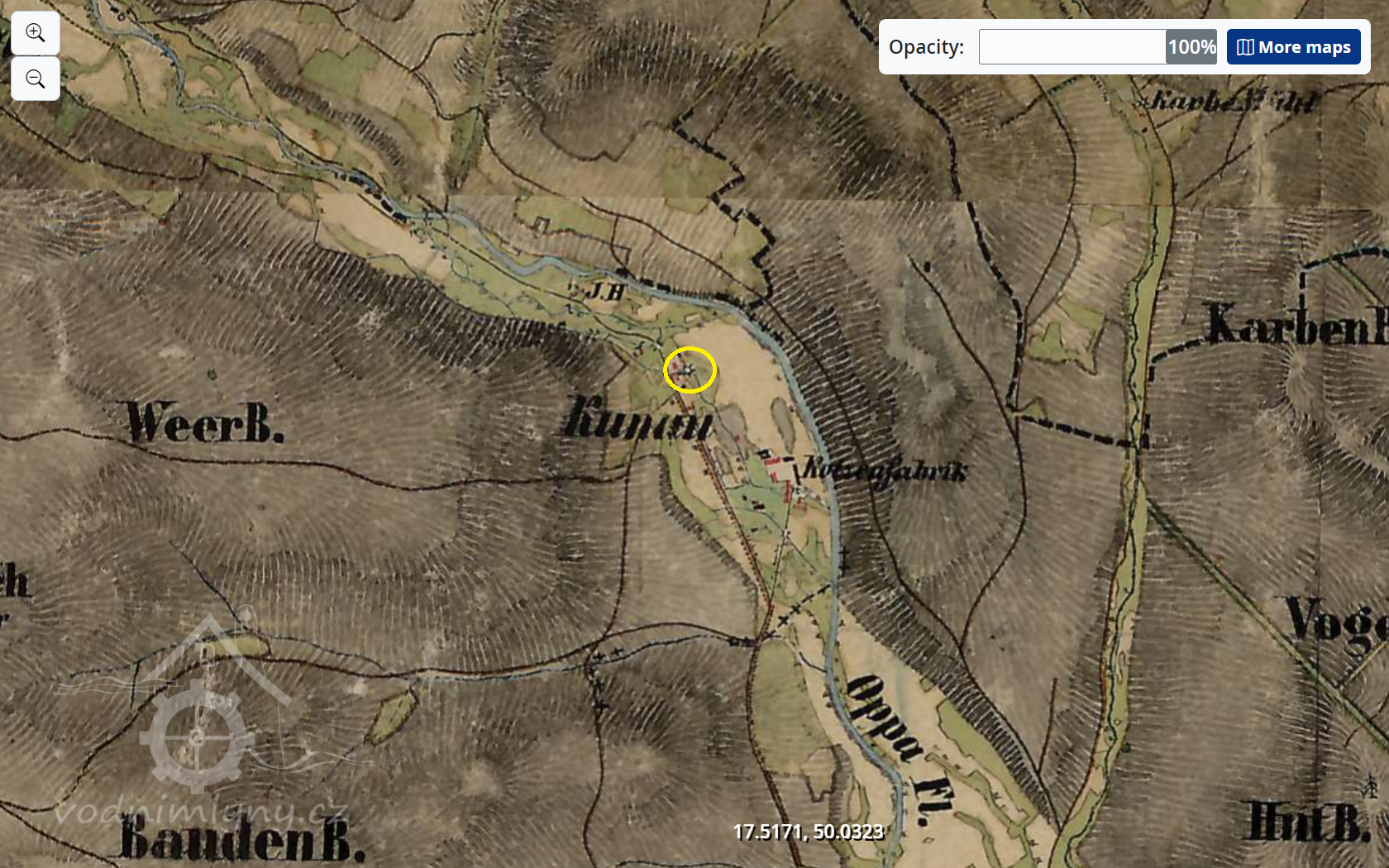 Zaniklý velký mlýn, zachována pouze kolna. (Kunov náležel původně pod Skrbovice).