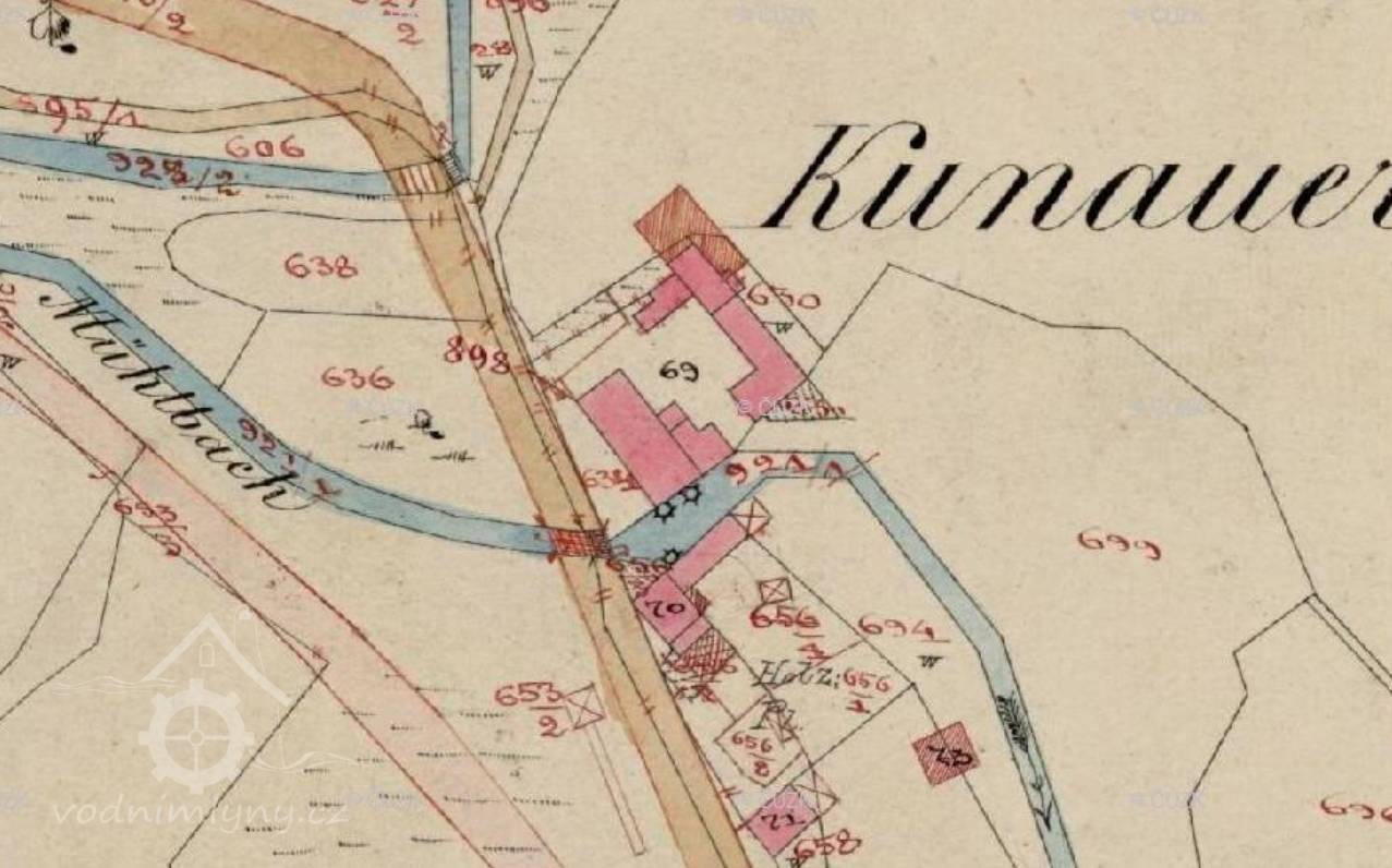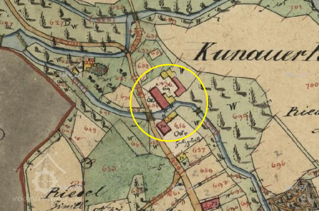 Popis1930 mlýn: 1 kolo na spodní vodu, hltnost 1,4 m3/s, spád 2,1 m, výkon 17,6 HP