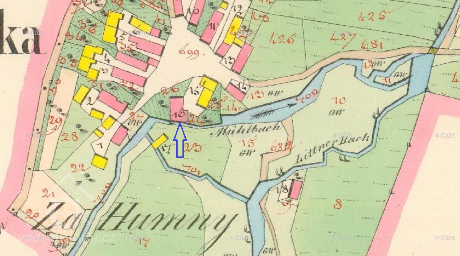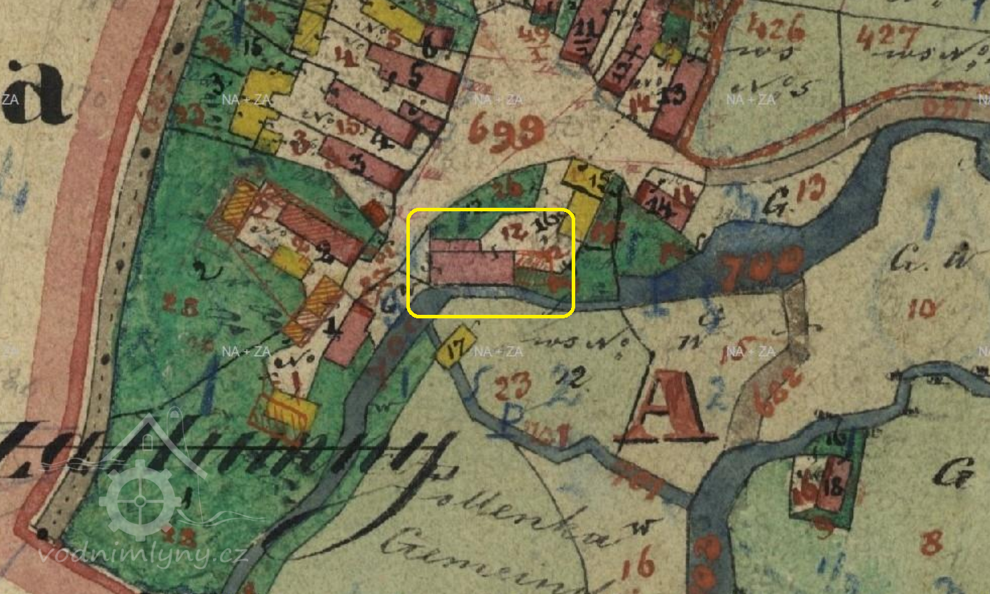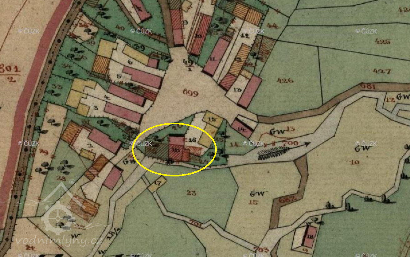 Popis1930: 1 kolo na svrchní vodu, hltnost 0,1 m3/s, spád 4 m, výkon 3,5 HP