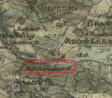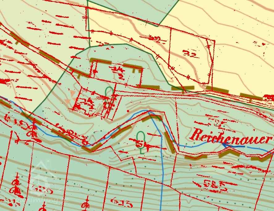 Zaniklý menší mlýn nad Hietzkerovým mlýnem.