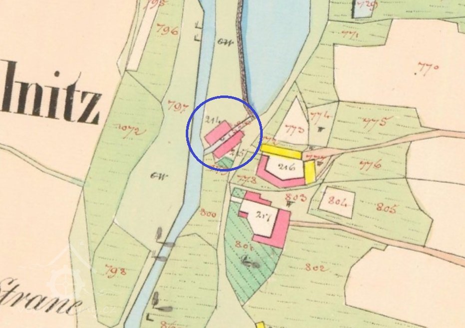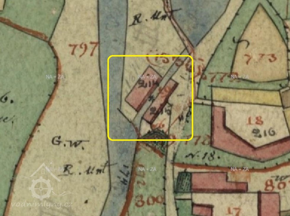 Zaniklý mlýn s pilou, později elektrárna, dnes na jeho místě fabrika.