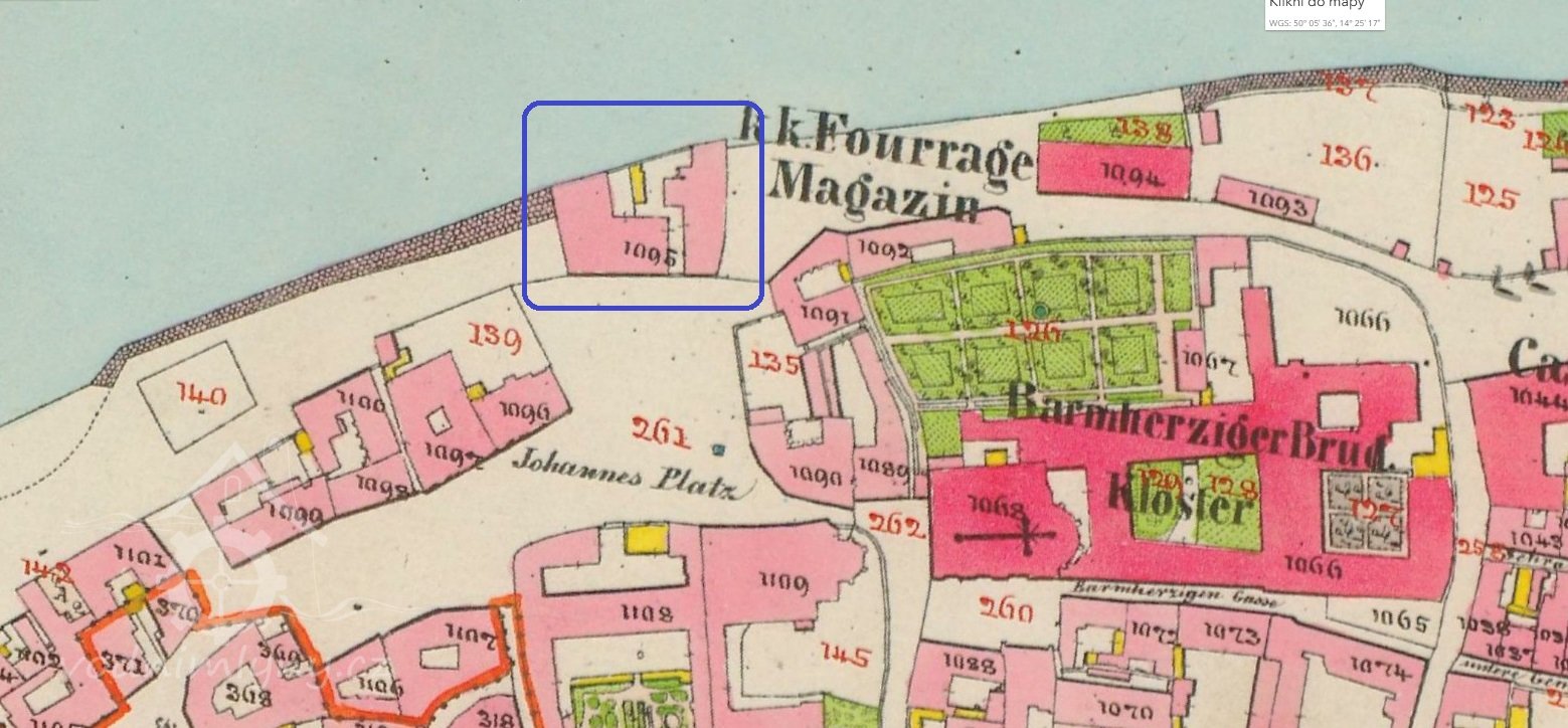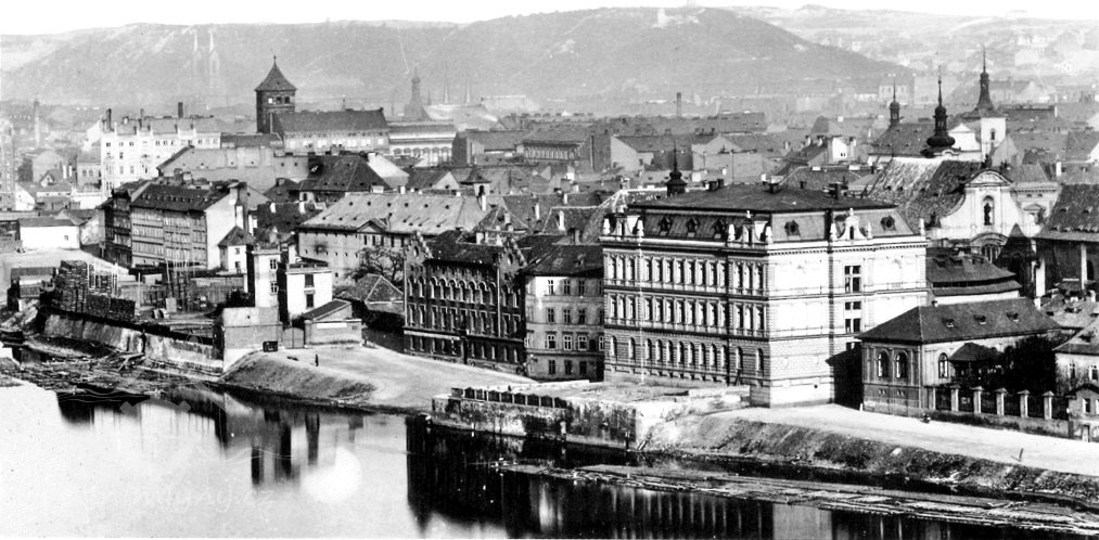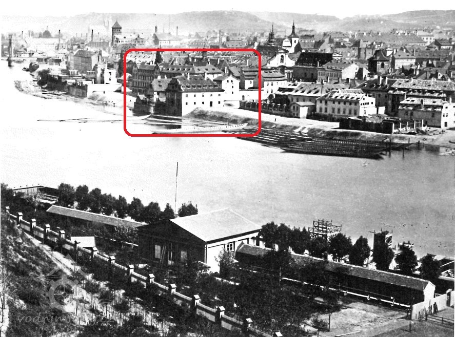 Malebná skupinka barokních mlýnů, zbořených v roce 1880, na jejich místě postavena Josefovská německá škola, rovněž zbořená v roce 1916 při stavbě nábřeží.