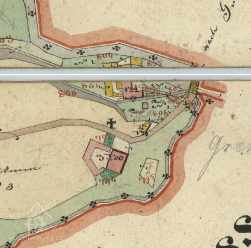 Popis1930: 1 kolo na svrchní vodu, hltnost 0,133 m3/s, spád 3,85 m, výkon 4,44 HP