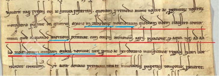 .....molenium quoddam eidem claustro continuum, quod aliquando Darenonis extiterat cum omnibus attinentiis, agris, pisctione et aqua, usque ad alium molemdium cuiusdam Mikul nomine