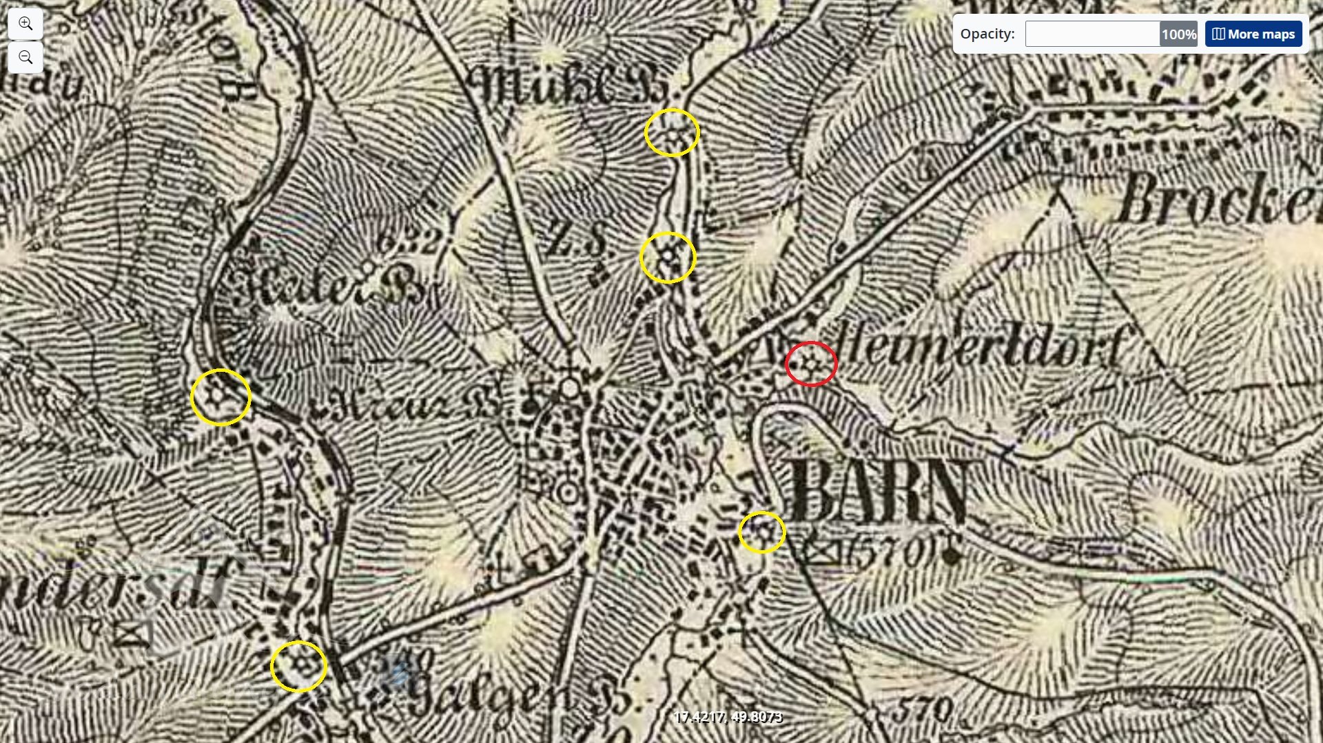 1 km sv od kostela Nanebevzetí P. Marie v Moravském Berouně