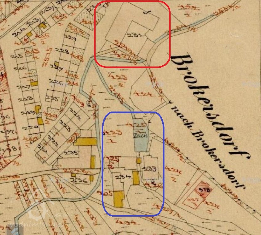 Zaniklá akumulační nádrž nad mlýnem, 1954 po zániku mlýna obnovena, před 1990 opět zrušena.