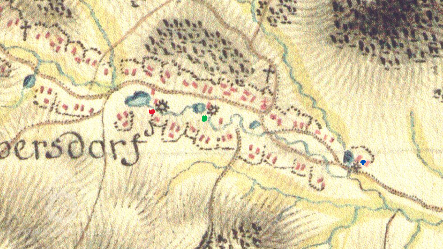 Zobrazen na mapě I.vojenského mapování.