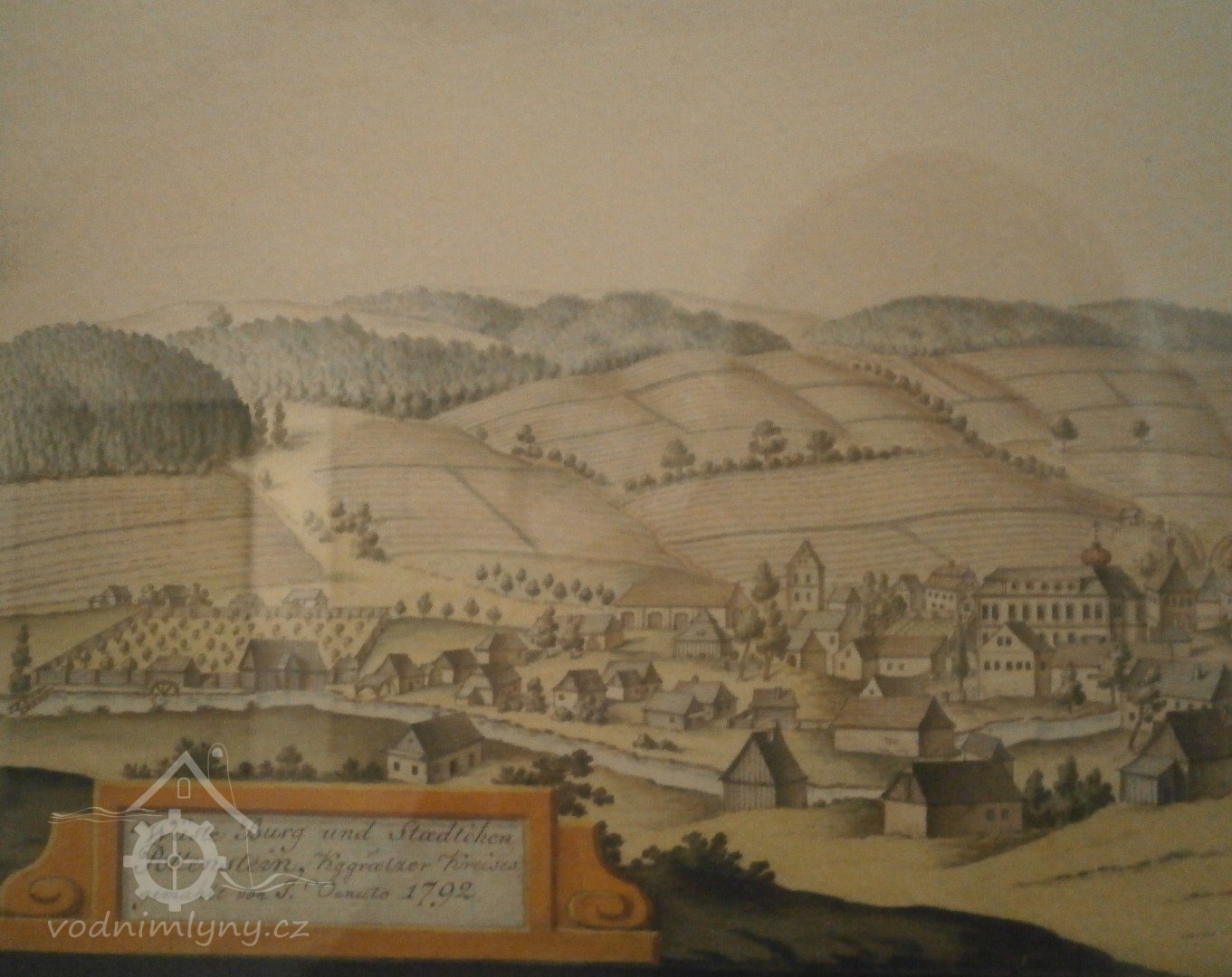 1651 Soupis poddaných podle víry: mlynář Michal Lenger (30 let, katolík), manželka Marie (21), tovaryš Kryštof (13)