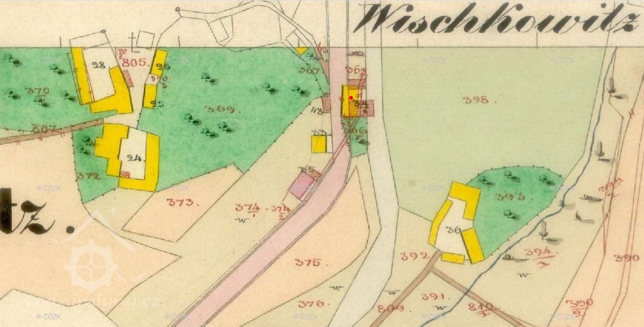 Mlýn nejspíš získal vodní pohon až po roce 1837. Náhon je zakreslen na Indikační skice, ale na Císařském otisku chybí.