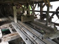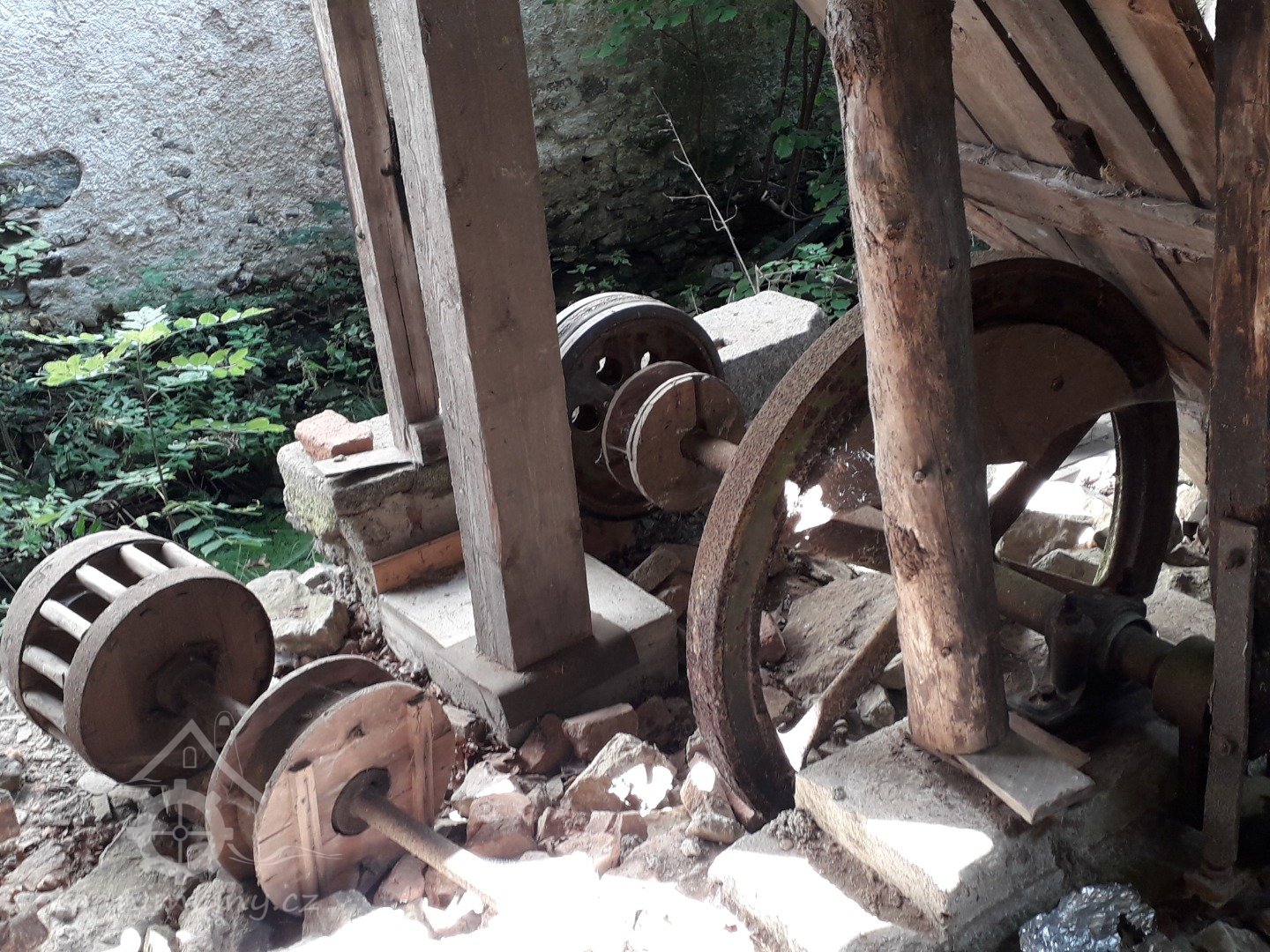 Při vnější prohlídce mlýna je vidět, že v mlýně byla i turbína, ale nejvíce zaujme torzo pily na pohon vodním kolem. Dřevěné části katru jsou ještě zachovalé.