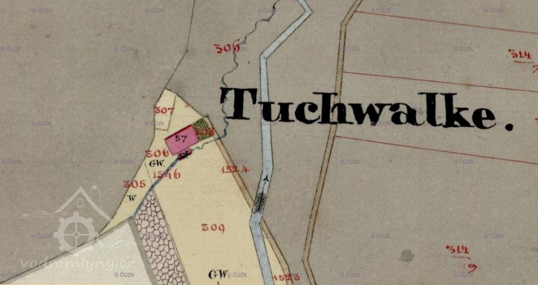 1) Mlýn prý původně stával pod rybníkem Valchou a byl při protržení hráze pobořený.