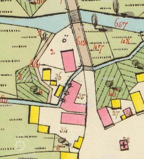 Popis1930: 1 kolo na svrchní vodu, hltnost 0,145 m3/s, spád 3,35 m, výkon 4 HP