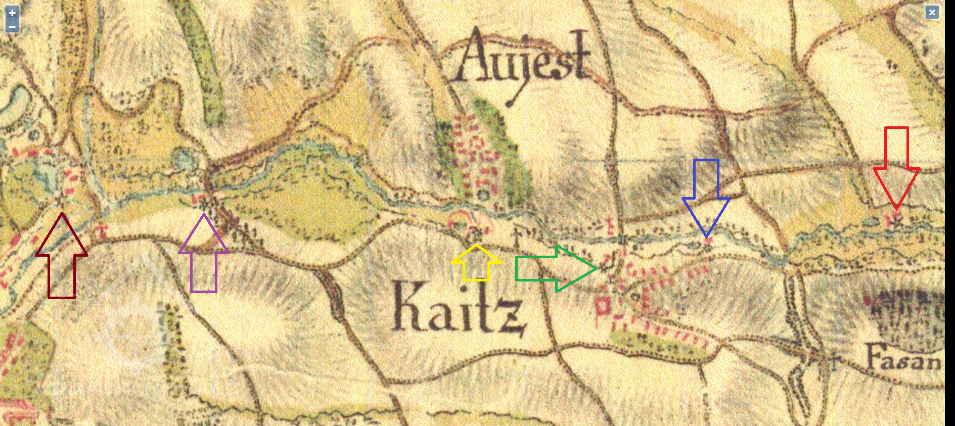Mlýn přímo na návsi v Kyjicích, zbořen v roce 1979 a zasypán hrází vodní nádrže Újezd.