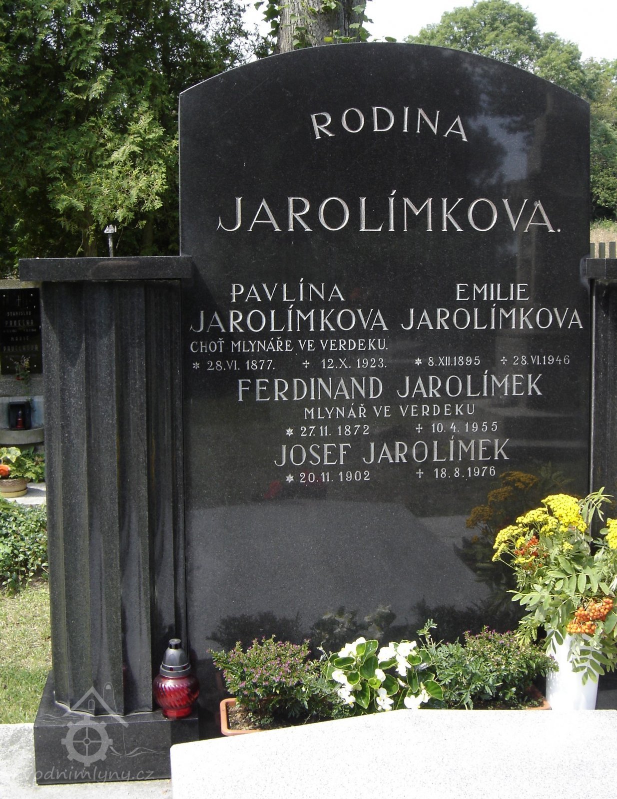 Mlynář Ferdinand Jarolímek je uváděn v adresáři z r. 1903 a 1934 jako majitel mlýna a pily.