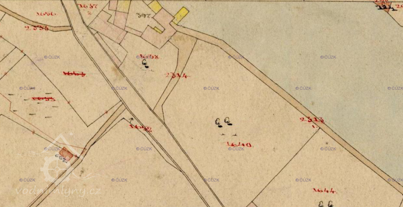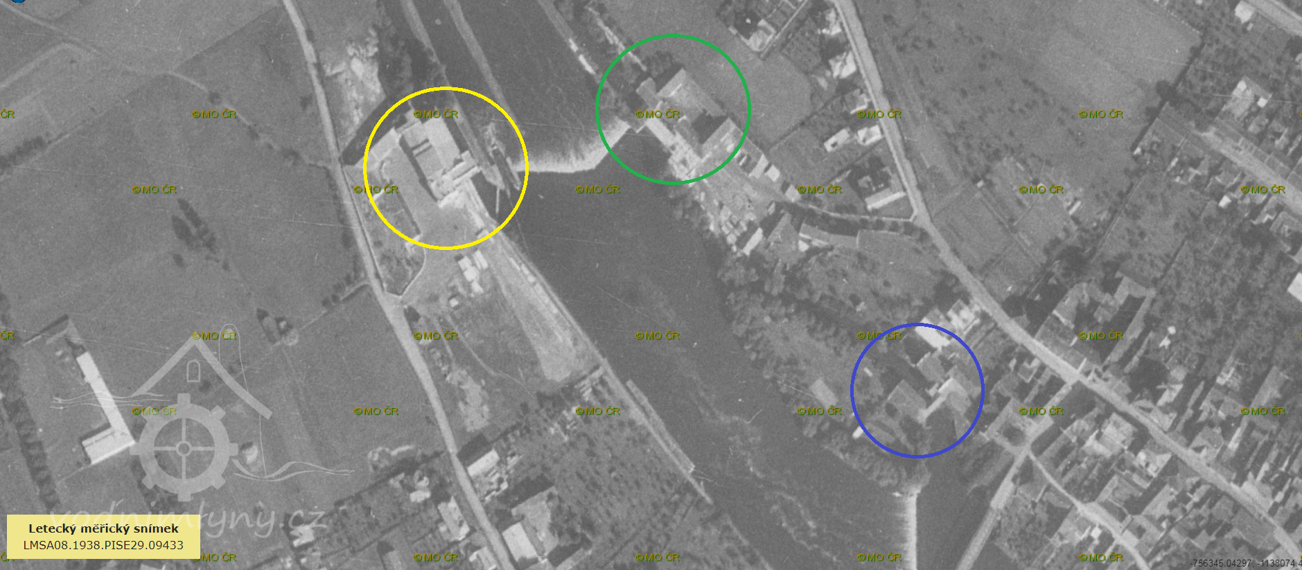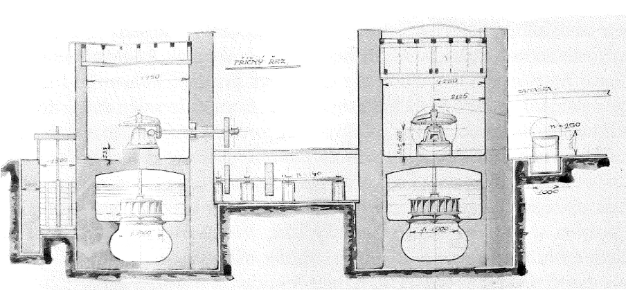 Popis1919 zažádáno o zřízení 2 turbín, každé o výkonu 65 HP a spádu 1,5 m, jedna k pohonu mlýna, druhá pily