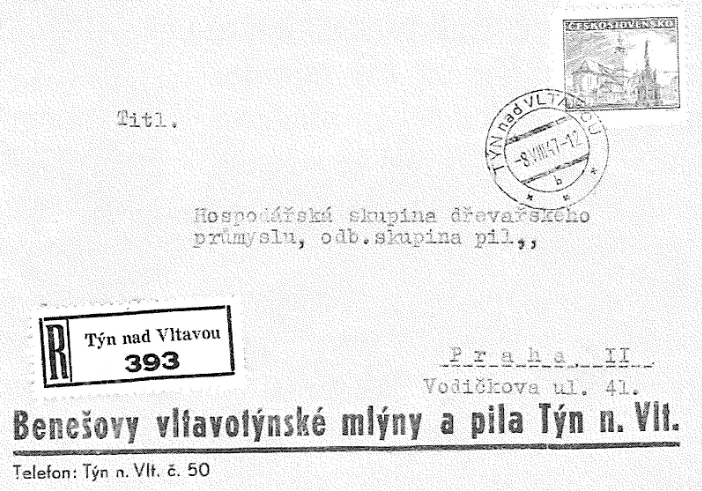 červenec 1948 podnik  "Benešovy vltavorýnské mlýny a pila" znárodněn, v srpnu zařazen pod n.p. Jihočeské mlýny