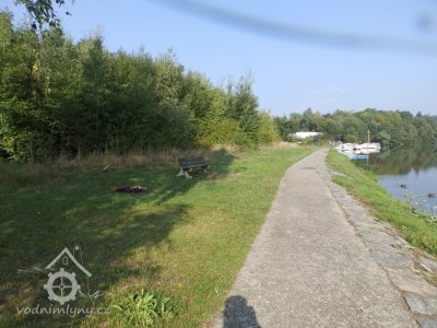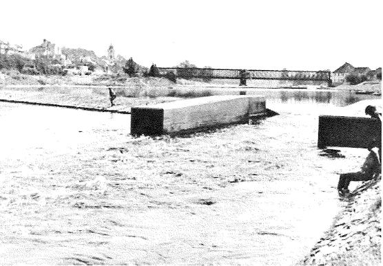 při levé straně řeky vorová propusť o šířce 6.3 m