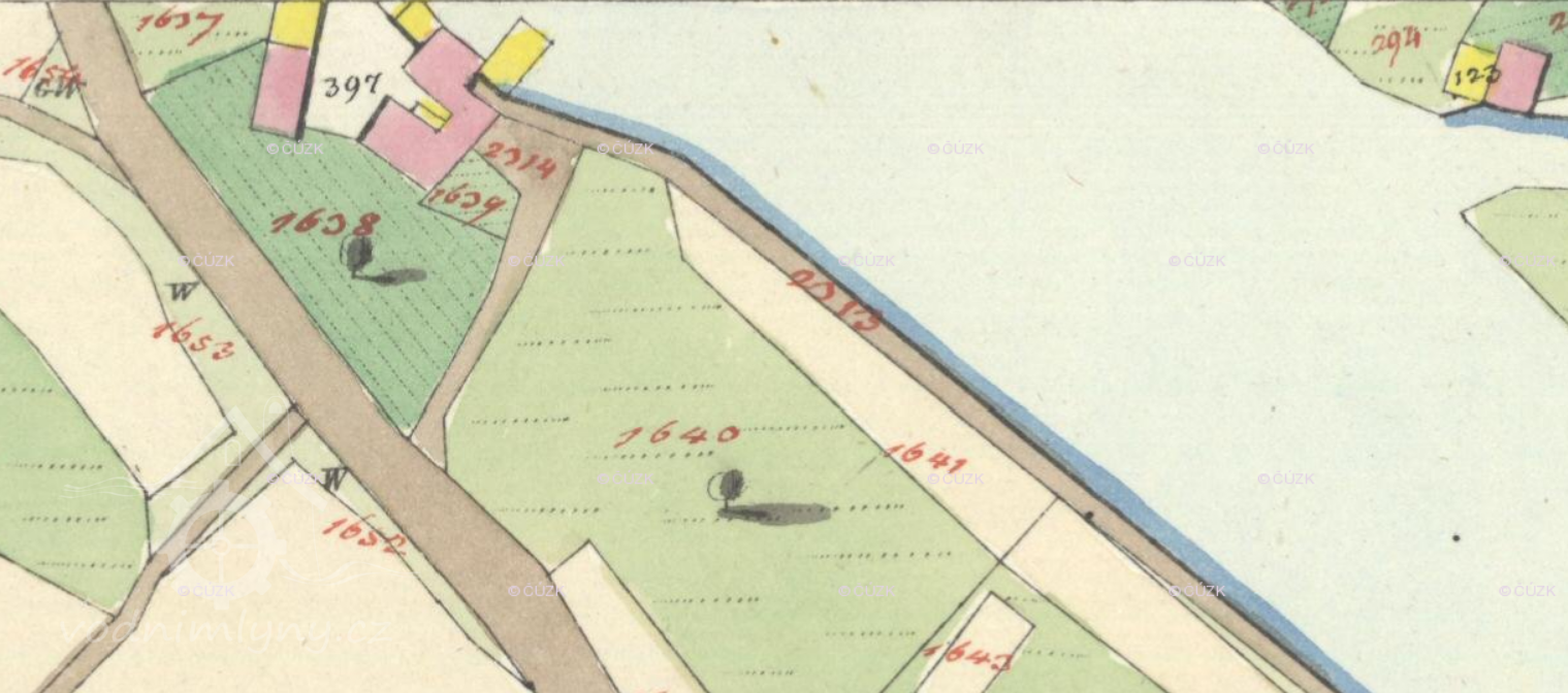 1880: 3 kola na spodní vodu ve dvou žlabech k pohonu mlýna,