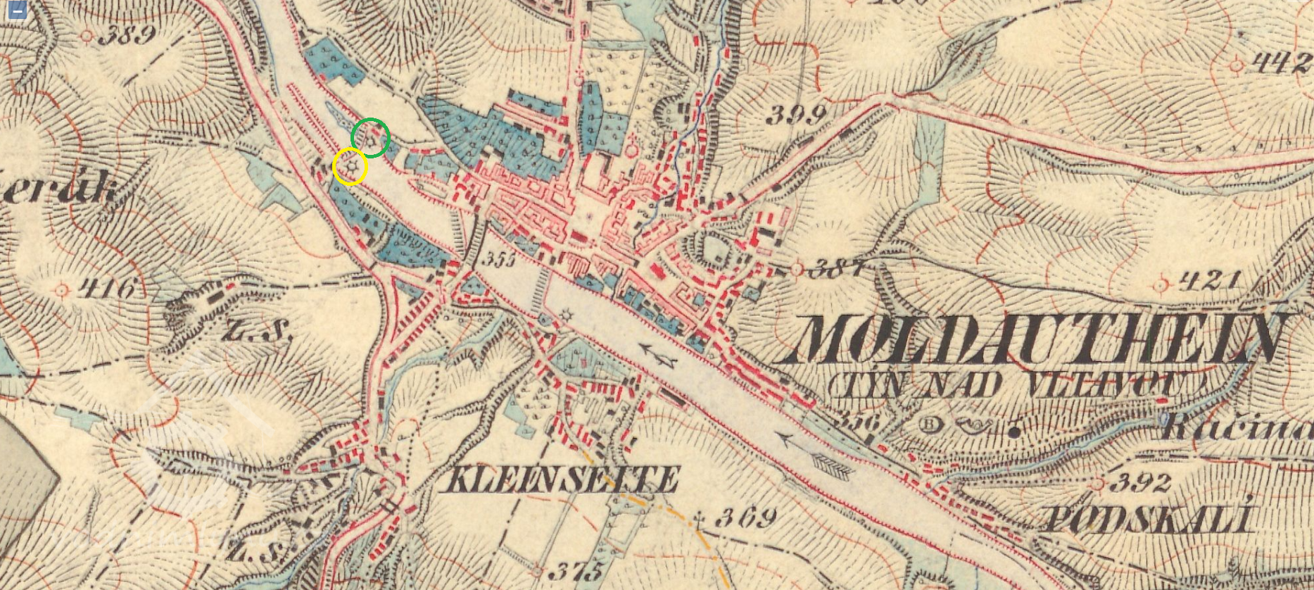 1 km sz od kostela sv. Jakuba v Týně nad Vltavou