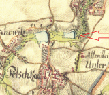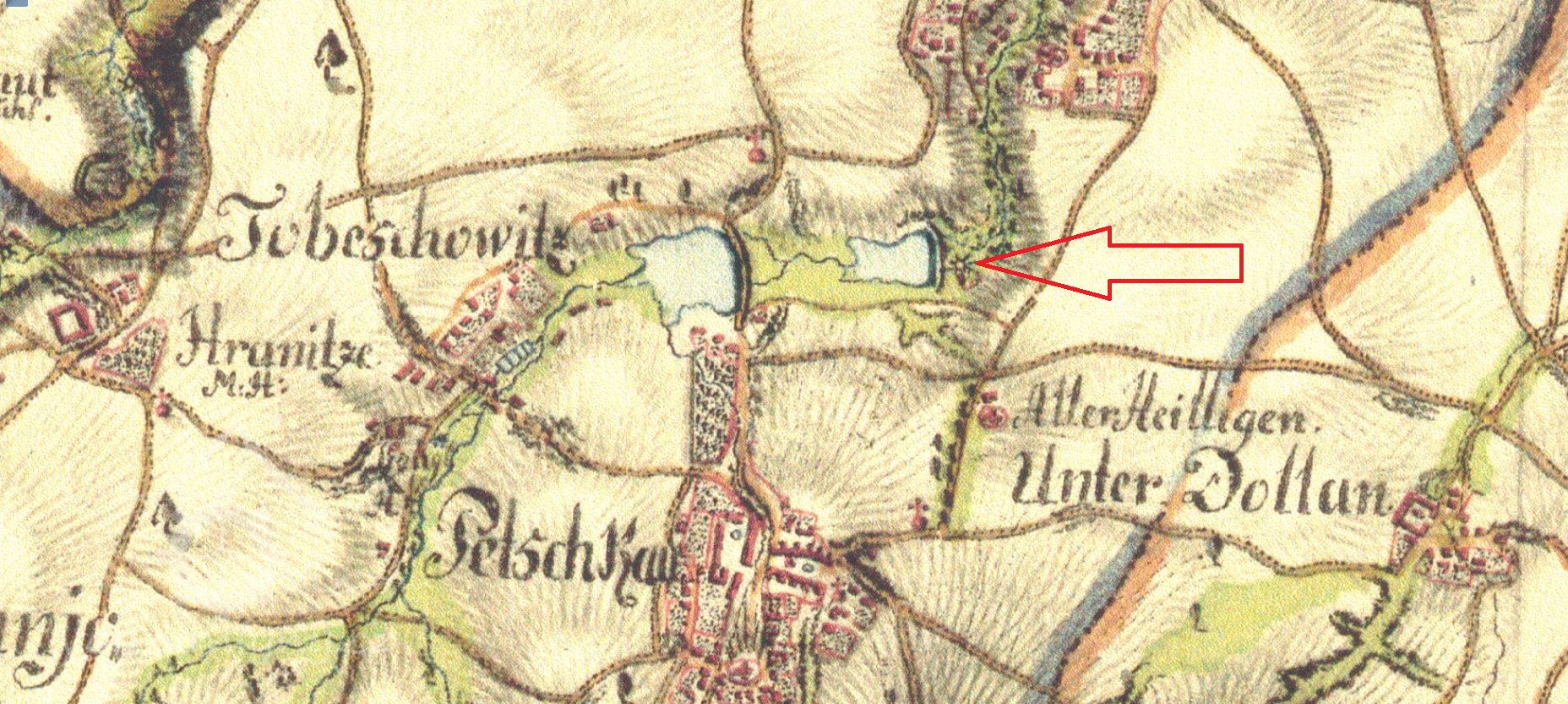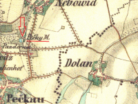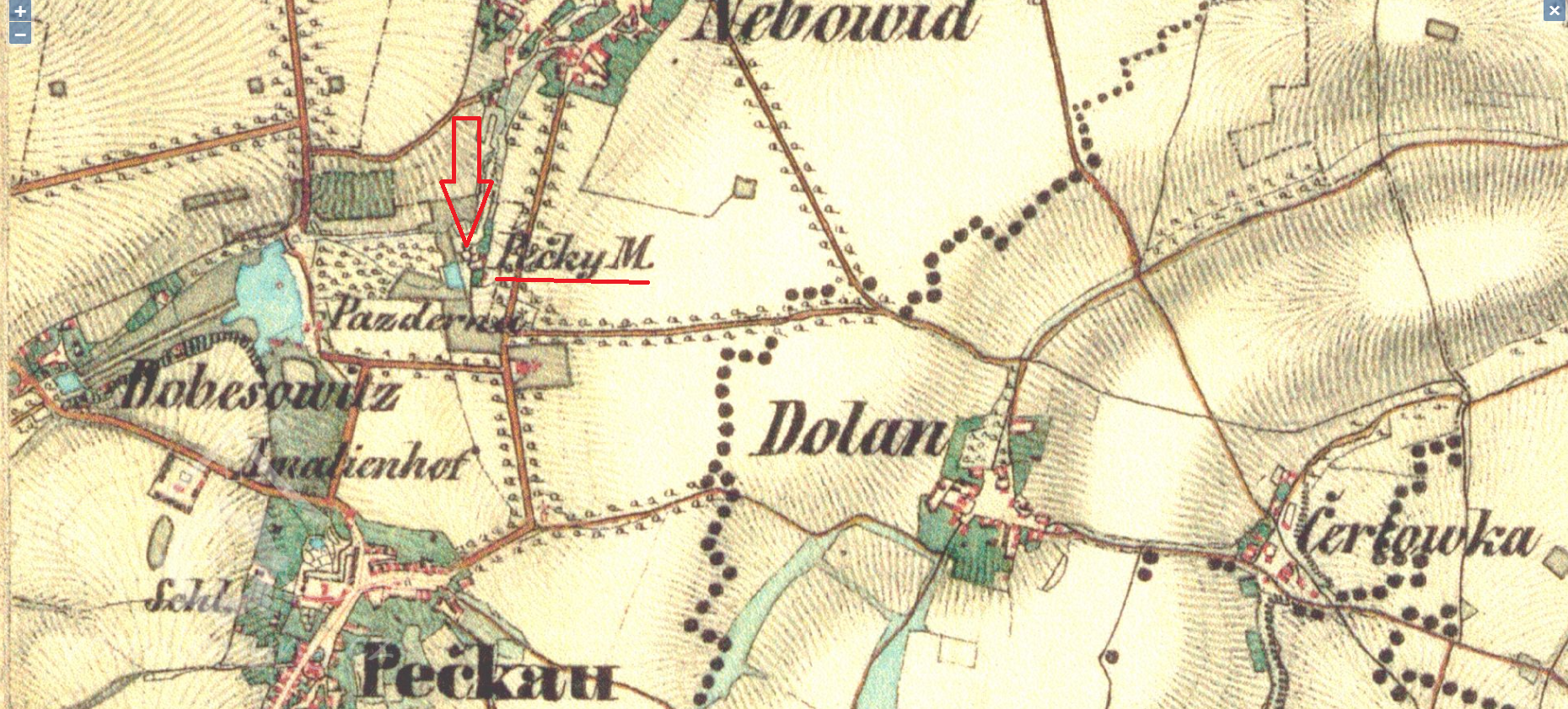 Zaniklý mlýn s pilou mezi Červenými Pečkami a Nebovidy. Na místě mlýna dnes stojí čistička.